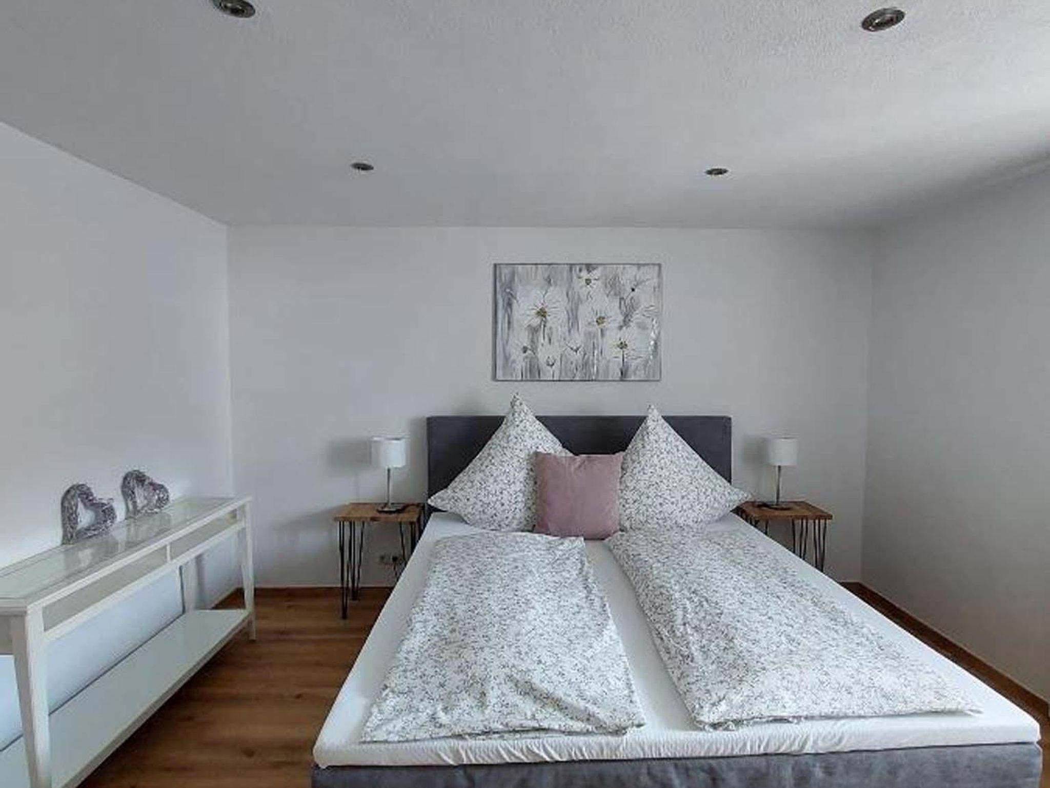 Die Ferienwohnung verfügt über 3 separate moderne Schlafzimmer: 1 SZ mit Boxspringbett, 1 SZ mit Doppelbett, 1 SZ Seniorenbett mit erhöhter Einstiegshöhe.
