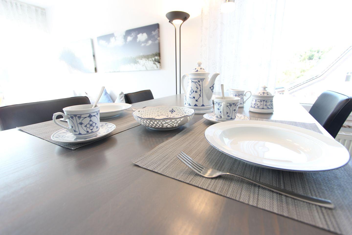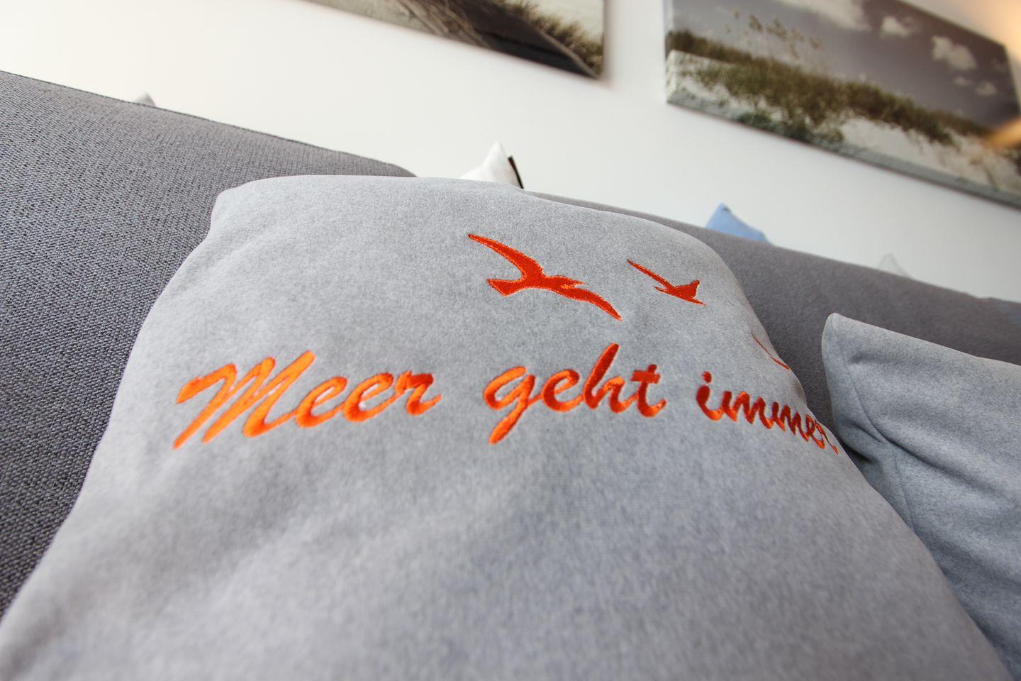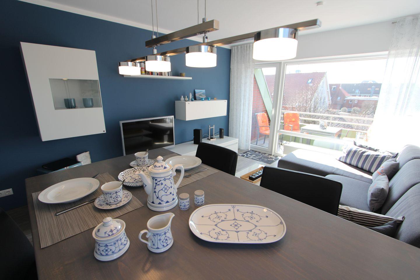 Die Wohnung liegt im 2. OG eines Mehrfamilienhauses mitten im Herzen von Langeoog. Die Wohnung bietet auf ca. 50 m² Platz für bis zu 2 Personen mit Baby. Wohnzimmer mit gemütlicher L-Couch, TV und Übergang zum Balkon. Auf dem Balkon stehen Ihnen in den warmen Monaten Möbel mit Auflagen zur Verfügung und ein toller Ausblick zum Wahrzeichen Langeoogs. Küchenzeile mit Geschirrspüler und Kochfeld. Im Schlafzimmer befindet sich ein modernes Boxspringbett mit den Maßen 180 cm x 200 cm, dort ist auch genug Platz für das Babyreisebett. Badezimmer mit Badewanne und WC.