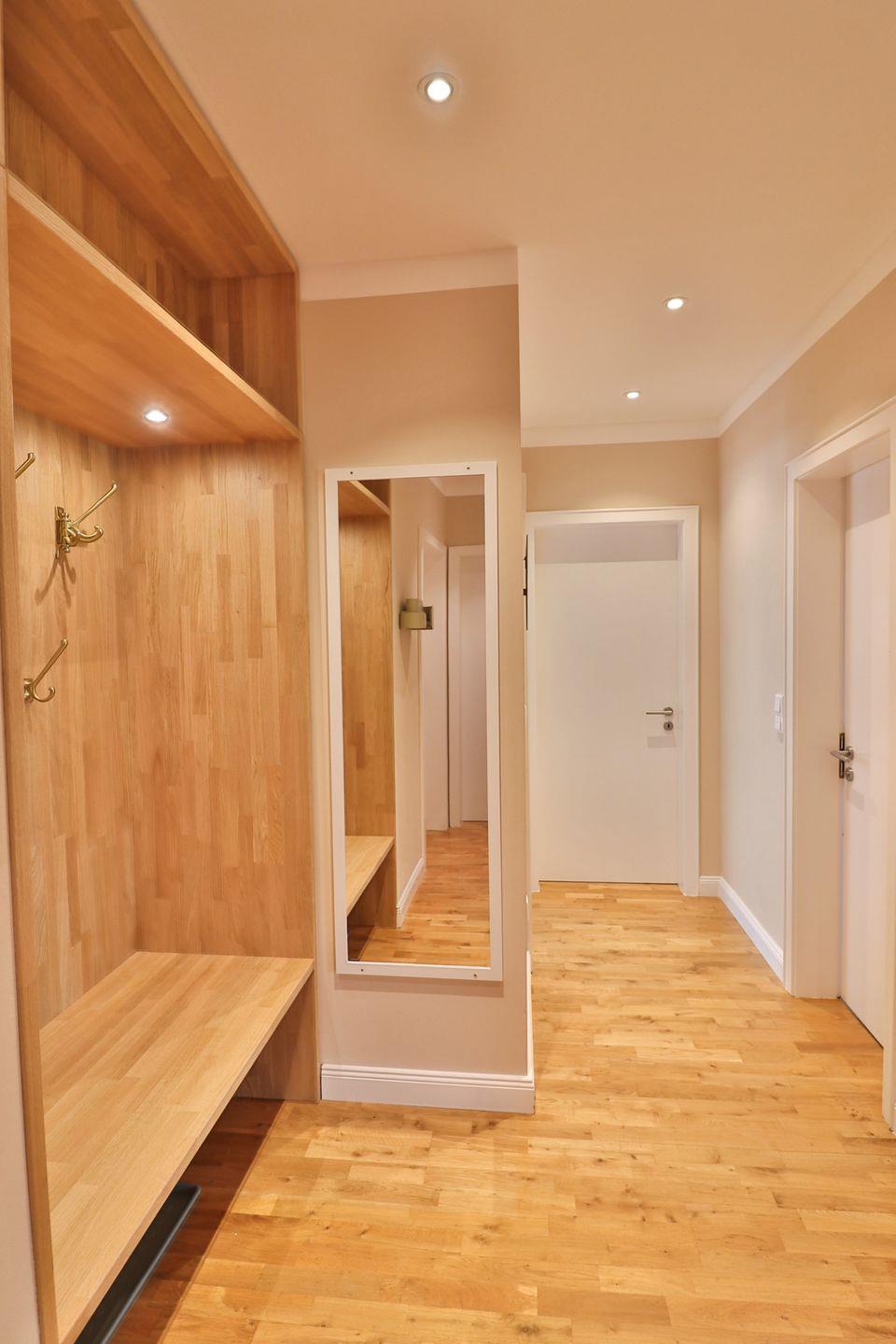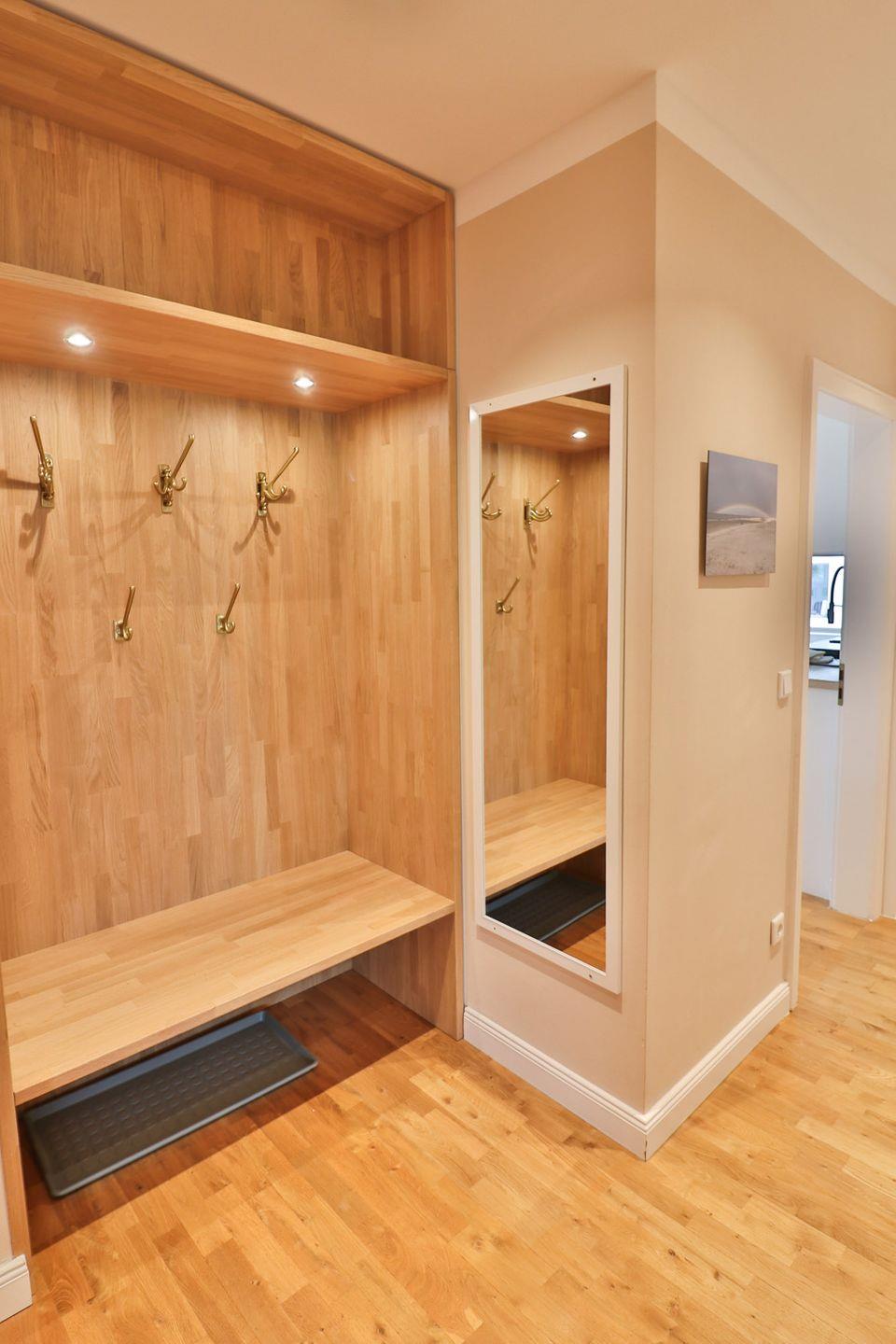 Die moderne Küchenzeile ist voll ausgestattet und lässt keine Wünsche offen. Backofen und Mikrowelle befinden sich auf angenehmer Arbeitshöhe, dazu gibt es ein Cerankochfeld, eine Spülmaschine, einen Kühlschrank, eine Kaffeemaschine sowie alle wichtigen Küchenutensilien und kleine Geräte – ideal für unkomplizierte Selbstverpflegung.