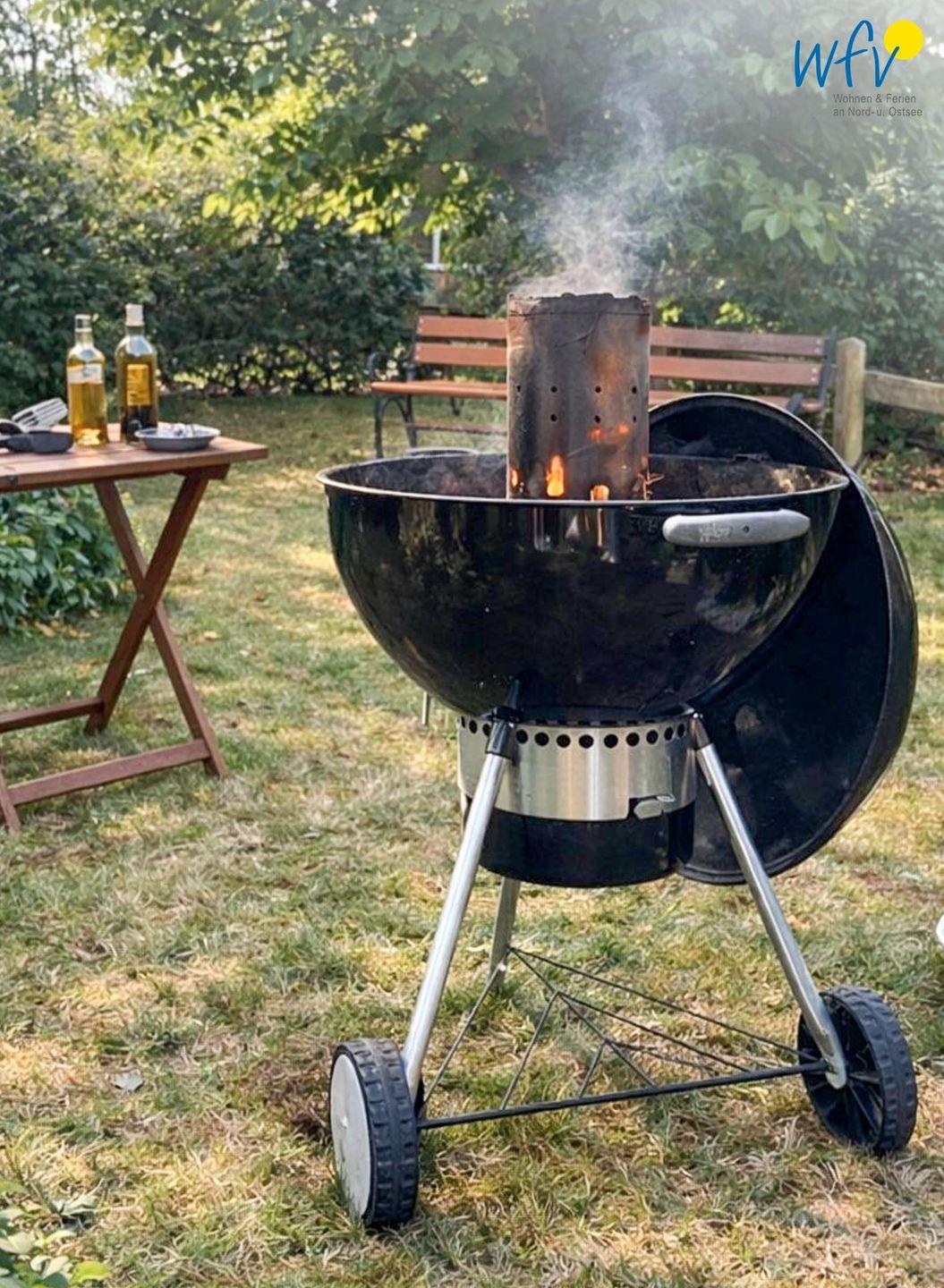 Vom Wohnbereich aus gelangen Sie auf die großzügige und möblierte West-Terrasse mit Nachmittagssonne; ein weiteres Plätzchen zum Verweilen finden Sie im direkt angrenzenden Garten. Perfekt, um auf der Gartenbank den ersten Morgenkaffee zu genießen, auf der Sonnenliege zu entspannen oder den Urlaubstag mit einem Grillabend ausklingen zu lassen.