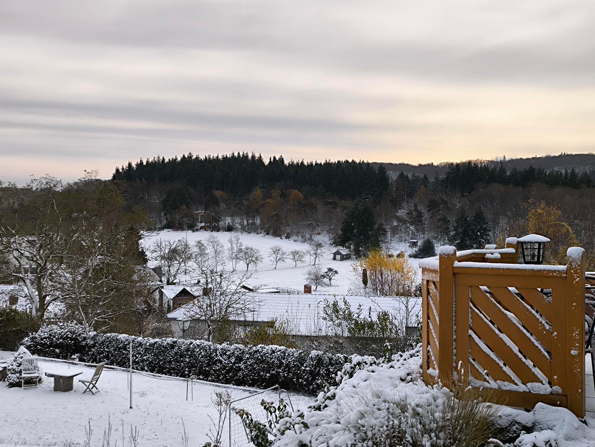 - einer Terrasse mit Süd-Ost Ausrichtung mit ungehindertem, weitschweifendem Blick über die wunderbare Eifellandschaft und den Brunnen im Vorgarten. Gartenstühle mit Auflagen und Tisch und einem Sonnenschirm.