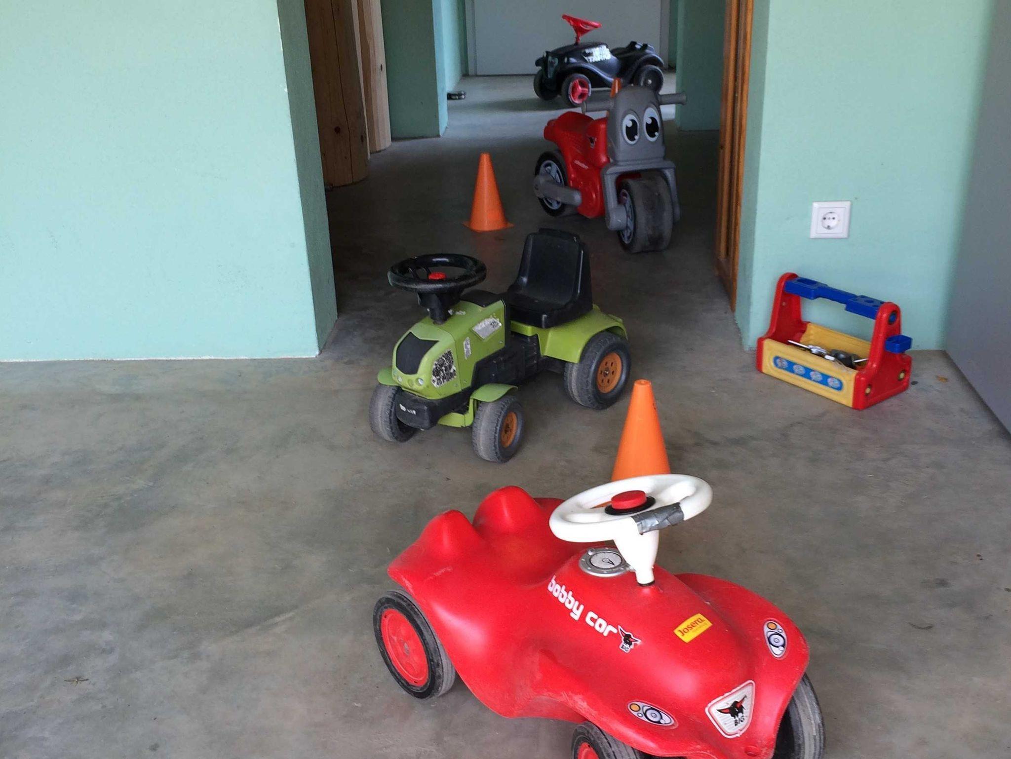 Es gibt ein abgeschlossenes Schlafzimmer mit einem Doppelbett, einer Maisonette mit einem Doppelbett und eine Auszieh-Couch. Überall können Babybetten gestellt werden.