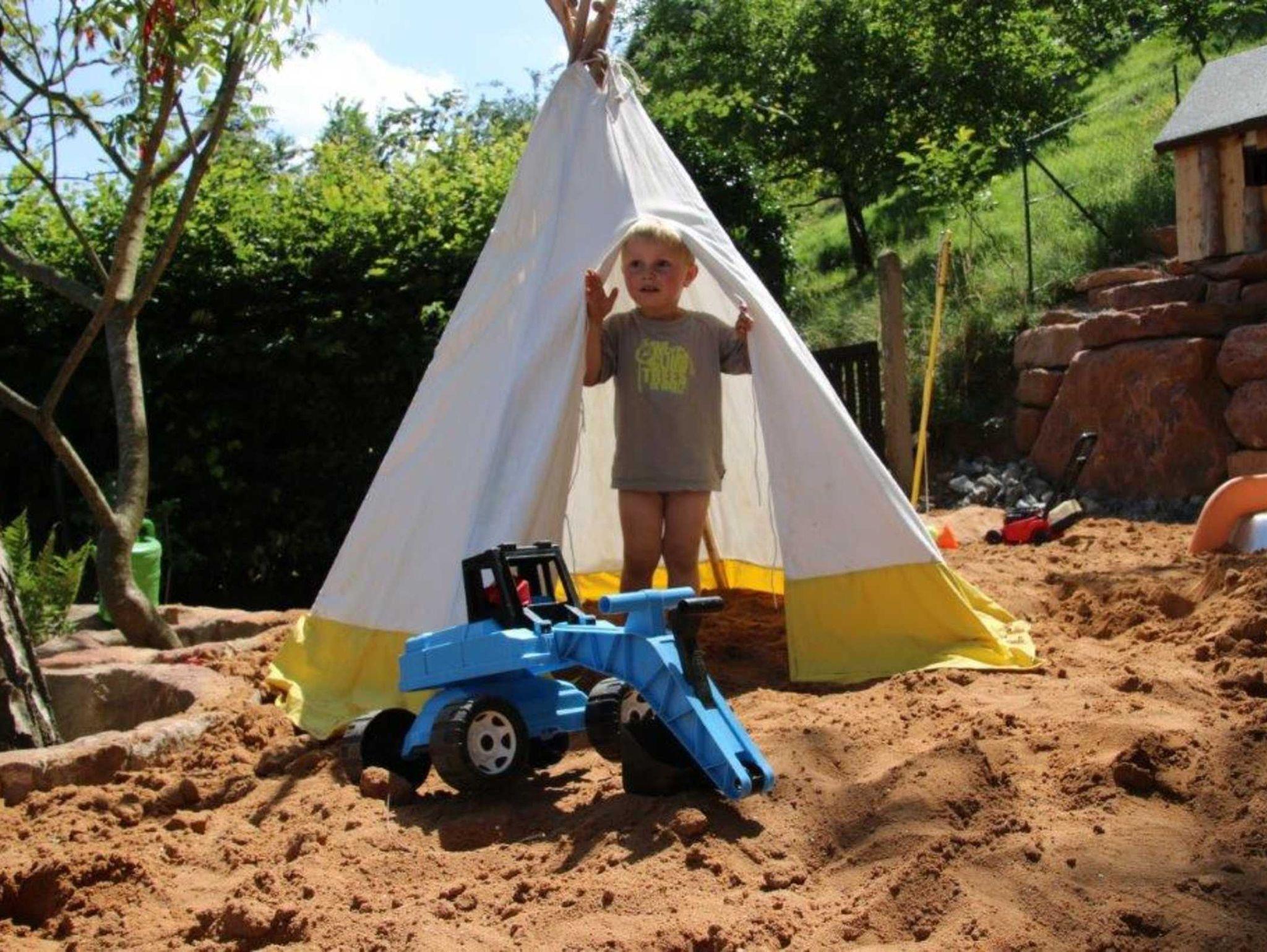 Auf dem großen Spielplatz mit Megarutsche und ganz viel Sand für die größten Burgen, die je gebaut worden sind die Kleinen und Großen direkt in Sichtweite zum Haus. Bei Regen haben die Kinder auf Wunsch einen „Indoor“ Spielplatz mit Namen „Abenteuerland“. Im Haus ist alles kindersicher und dennoch kinderfreundlich. Die große Terrasse lädt im Sommer wie auch im Winter zum Grillen ein, auf Wunsch mit Gas, Holzkohle oder ganz zünftig mit offenem Feuer. Vom offenen Whirlpool aus haben die Eltern Ihre Kinder während dem Spielen immer voll im Blick. Oder Sie können auch abends in der Blockhaus-Sauna ganz entspannt genießen, und haben Ihre Schützlinge über Babyphone am Ohr.