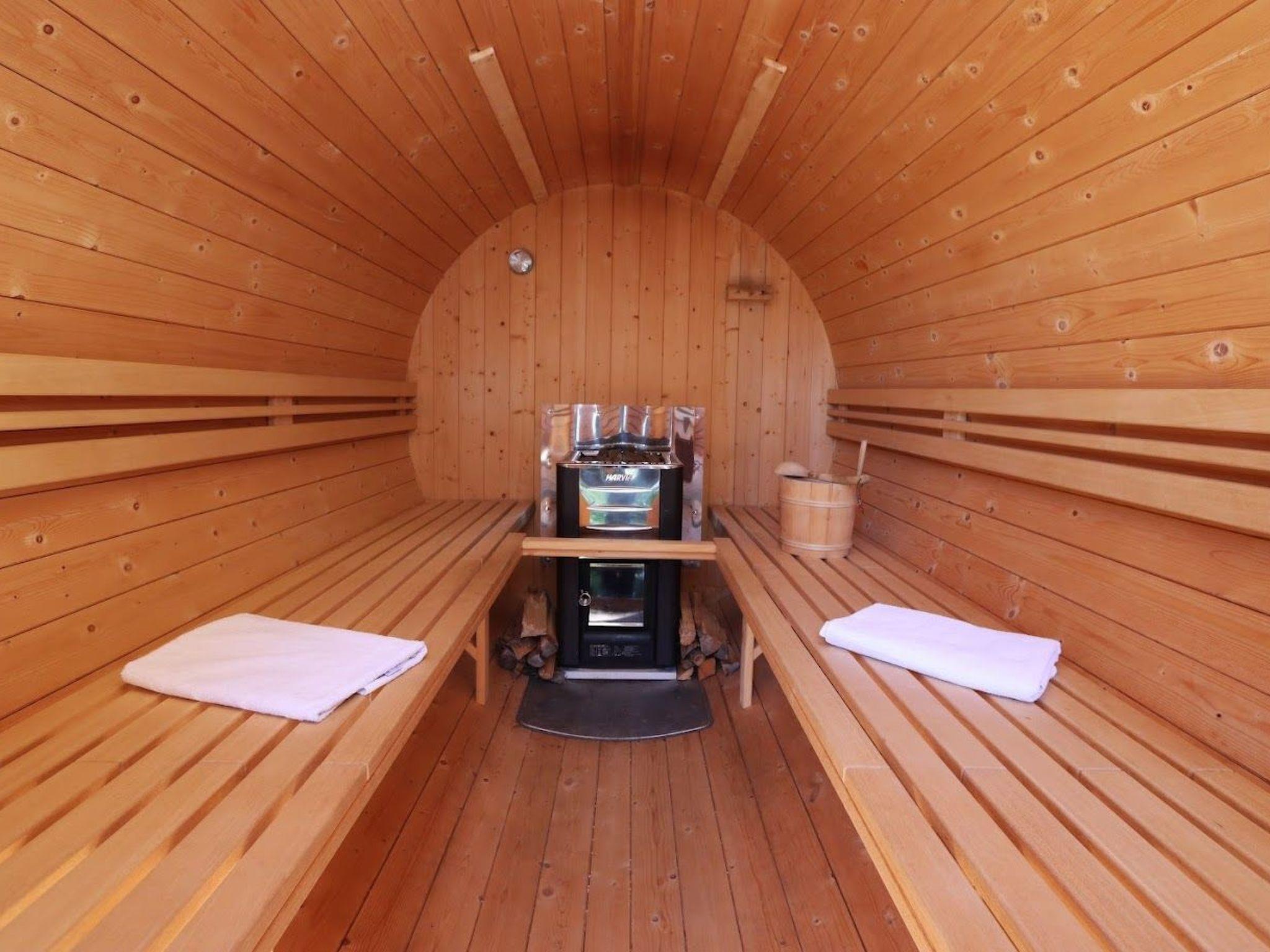 We have built a barrel sauna for our guests, which can be heated for a fee. One use of the sauna is included for stays of 7 nights or more.