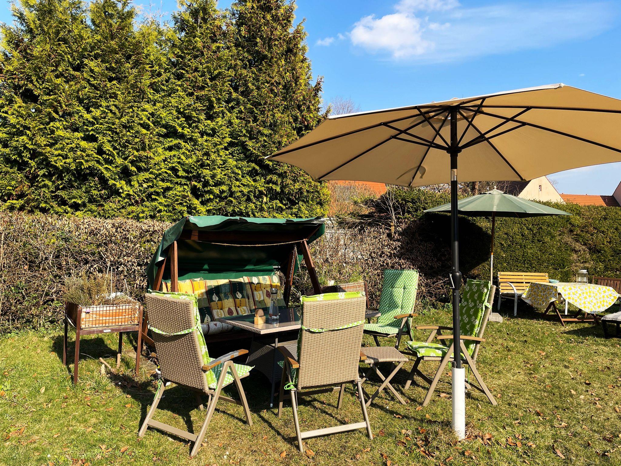 Den Gästen steht ein Garten zur Mitnutzung zur Verfügung ideal, um die Seele baumeln zu lassen. Gartenmöbel laden zum Verweilen ein, und auf Wunsch kann ein Grill bereitgestellt werden, sodass gesellige Abende im Freien garantiert sind.