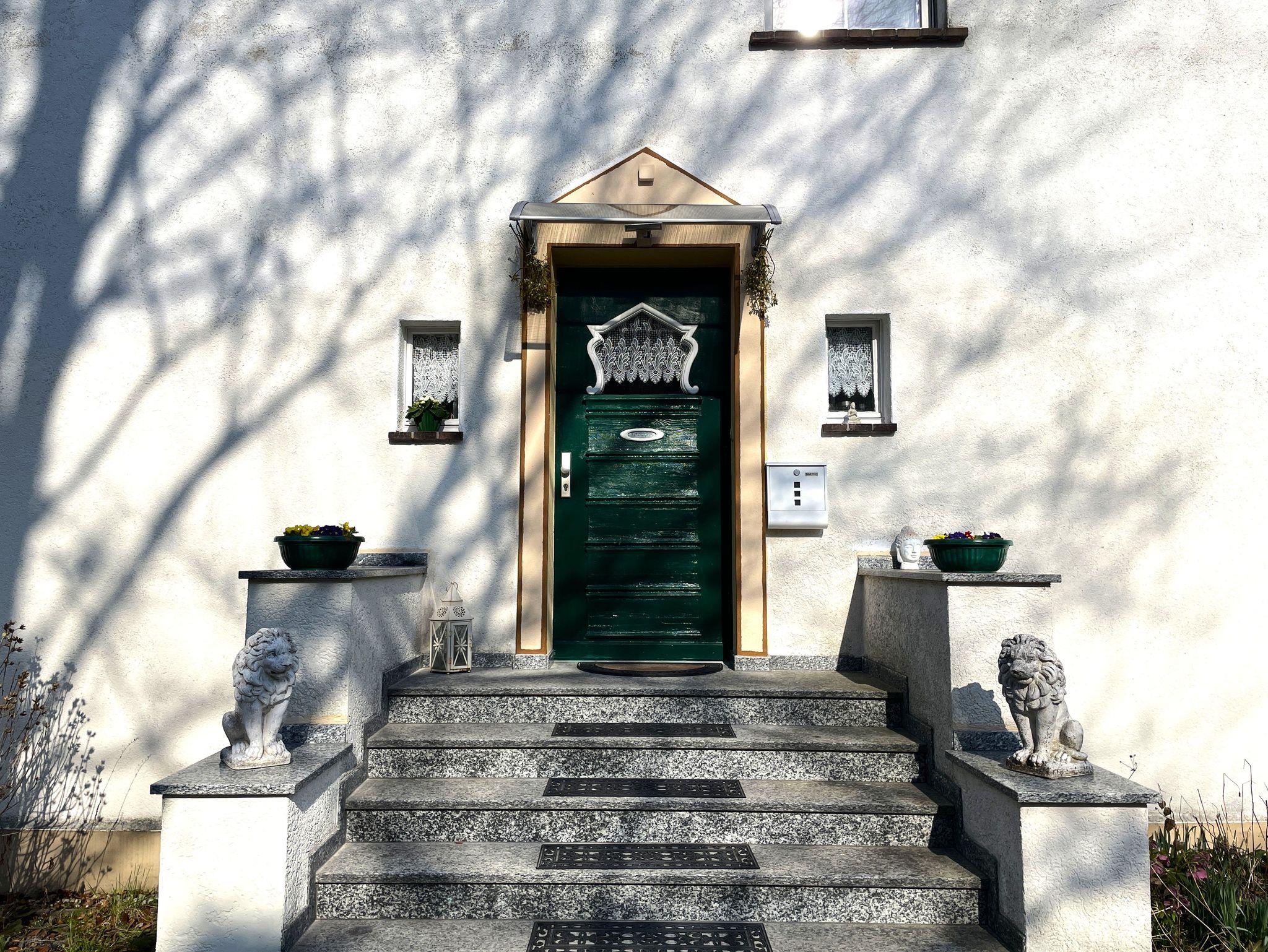 Die liebevoll sanierte Doppelhaushälfte Villa Sehenswert in Lauta lädt zu einem erholsamen Aufenthalt in ruhiger Umgebung ein. Der Zugang zur Wohnung erfolgt über den gemeinsamen Eingangsbereich des Hauses und führt über eine Treppe in das Obergeschoss; ein separater Eingang ist nicht vorhanden. Die Räume der Ferienwohnung sind für die Gäste selbstverständlich abschließbar.