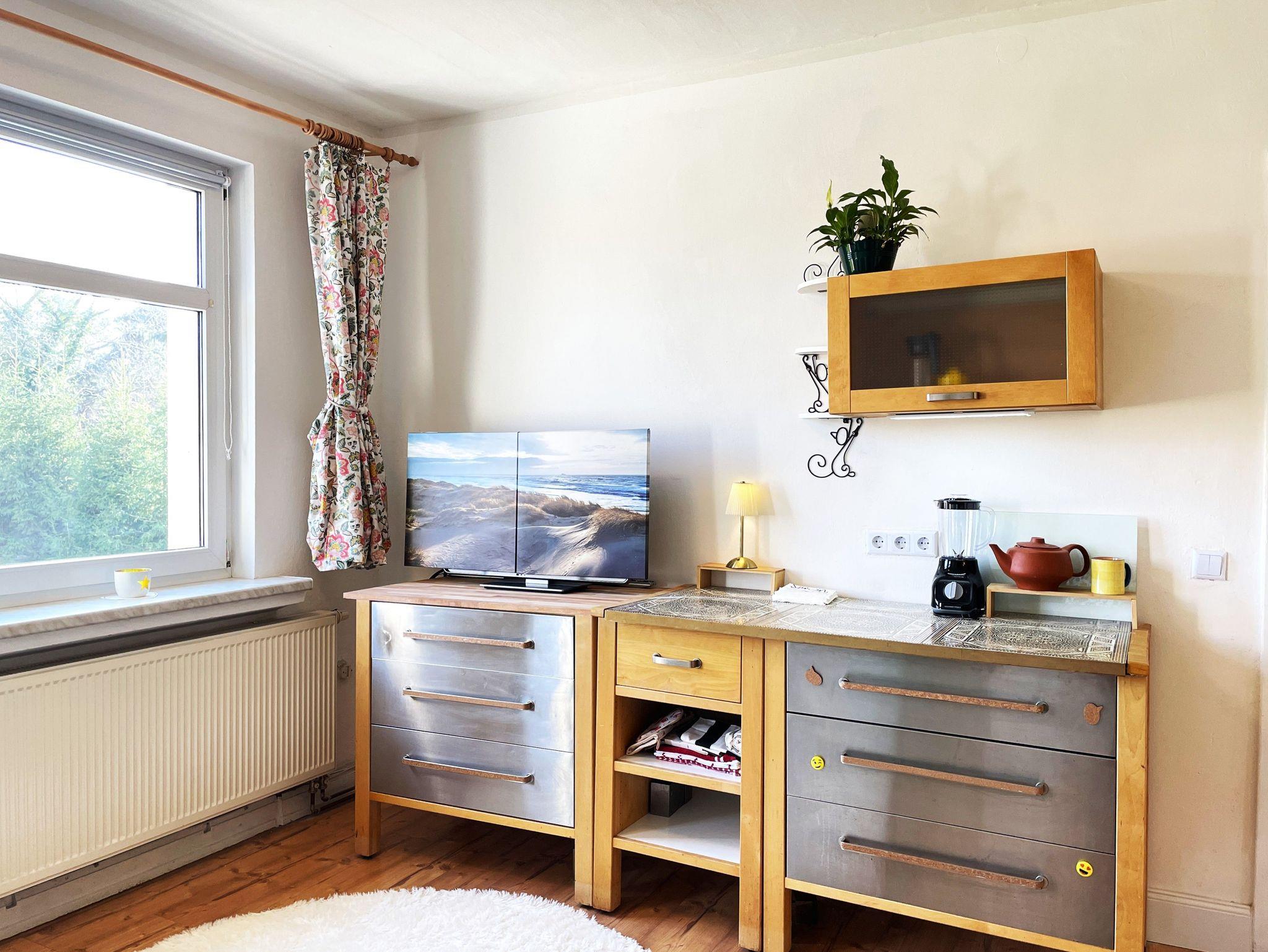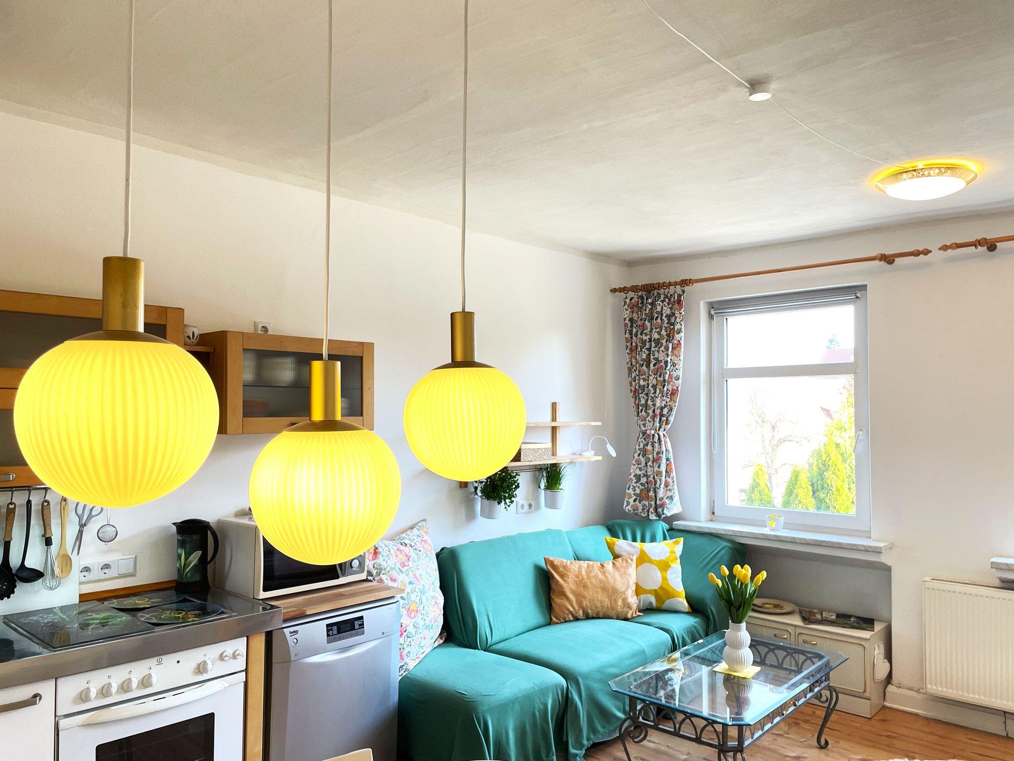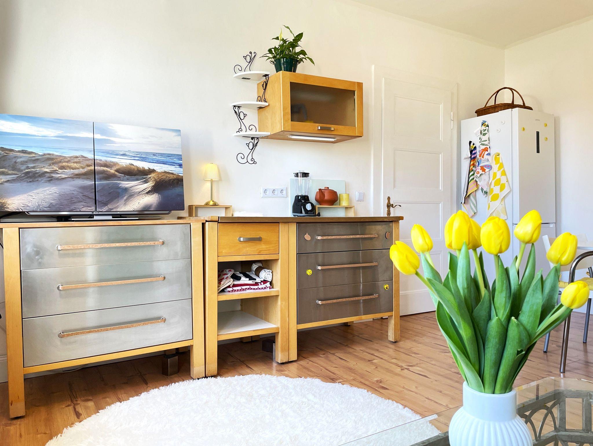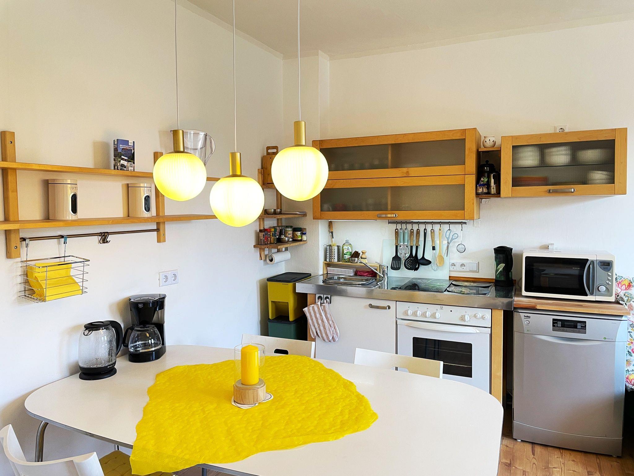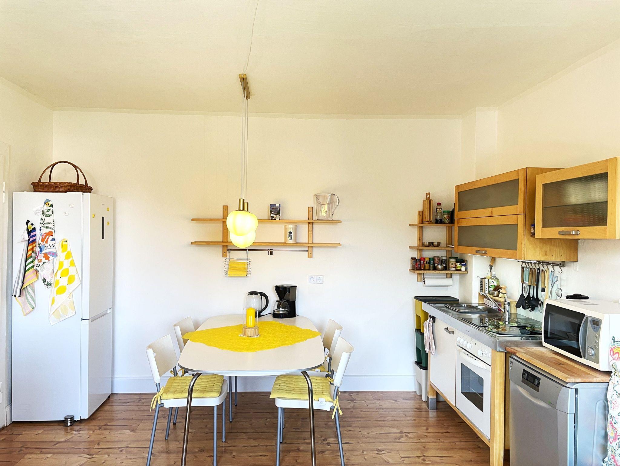 Die gemütliche Ferienwohnung in der oberen Etage der Doppelhaushälfte „Villa Seenswert“ bietet auf ca. 60m² Platz für bis zu 4 Personen. Herzstück der Wohnung ist die helle Wohnküche mit großem Esstisch, TV und moderner Ausstattung wie Geschirrspüler, Mikrowelle, Kaffeemaschine, Espressokocher, Standmixer, Herd mit Backofen und Kühl-Gefrierkombination – ideal für gemeinsame Mahlzeiten und gesellige Abende.