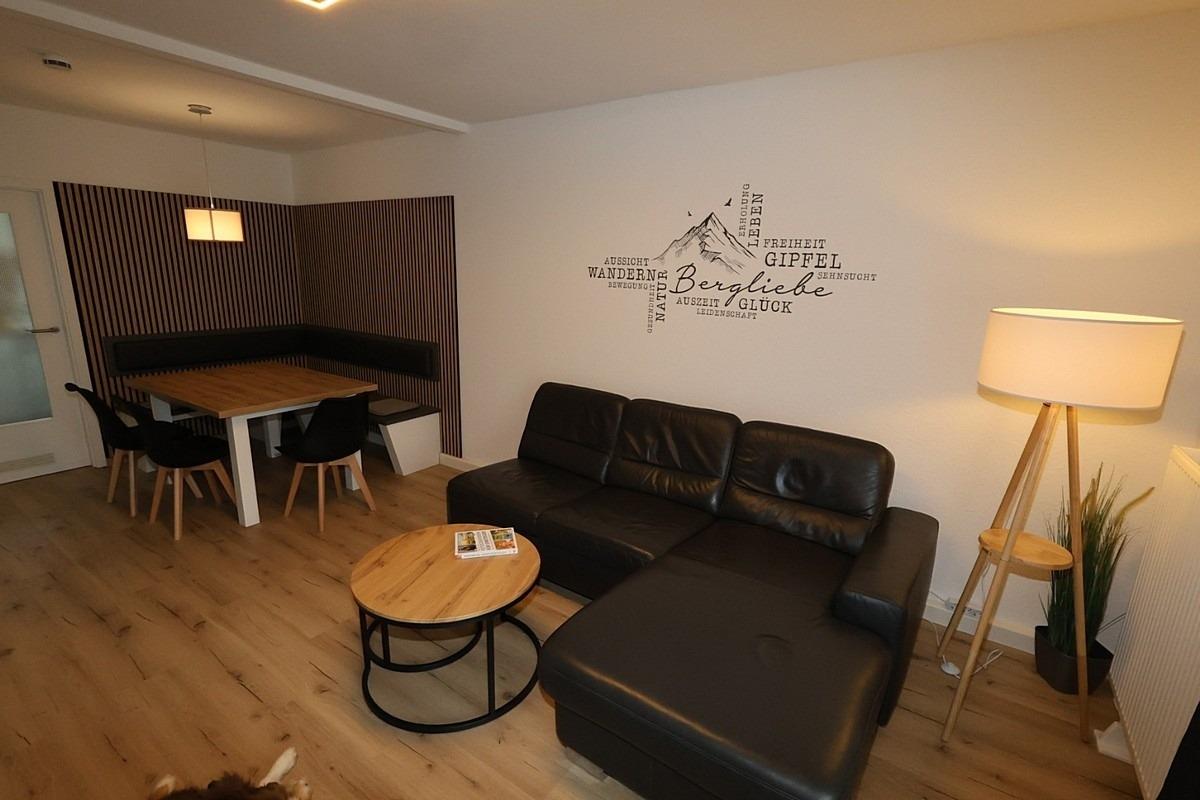 Im Wohnzimmer gibt es eine bequeme Couch mit Sessel und eine Schrankwand mit Flachbildschirm und Radio. Ein Festnetztelefon und WLAN für sind ebenfalls vorhanden. Direkt neben dem Wohnzimmer befindet sich die schöne Essecke mit einem Tisch, einer Sitzbank und 3 Stühlen und bietet Platz für bis zu sechs Personen.