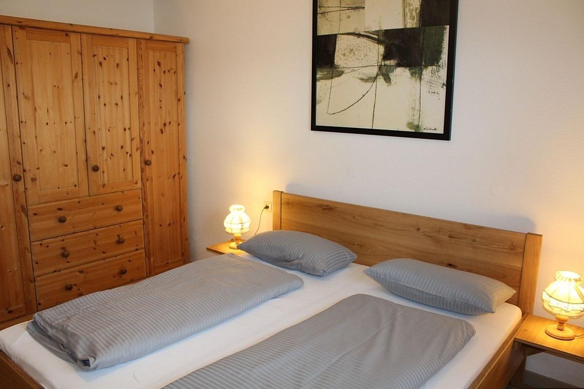 mit Doppelbett und geräumigem Kleiderschrank. Auch von diesem Zimmer aus haben Sie Zutritt zur Terrasse.