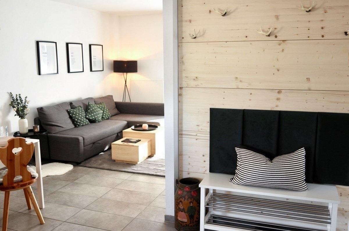 Das modern und gemütlich eingerichtete Wohnzimmer lädt zu gemütlichen Abenden mit einem gutem Film ein. Es bietet eine bequeme Couch mit Bettfunktion, einen LED Fernseher mit Soundbar, Stereoanlage, Bücher (auch Kinderbücher und Spiele). Vom Wohnzimmer aus gelangt man direkt auf die Terrasse.