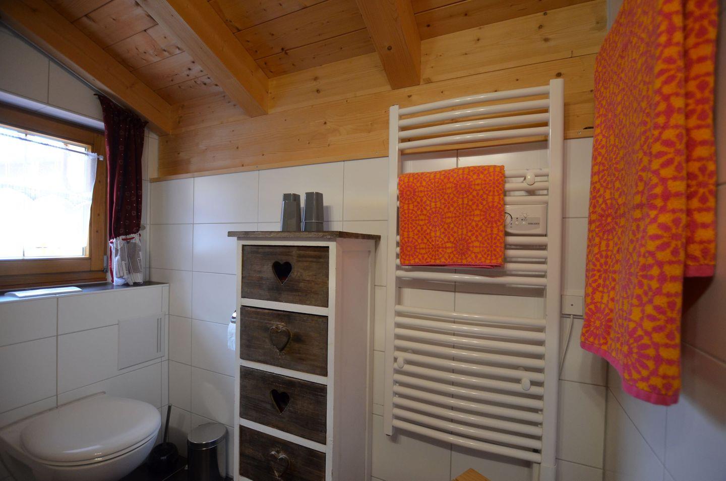 Das Badezimmer verfügt über eine Dusche, ein WC und zusätzlich eine Fußbodenheizung.