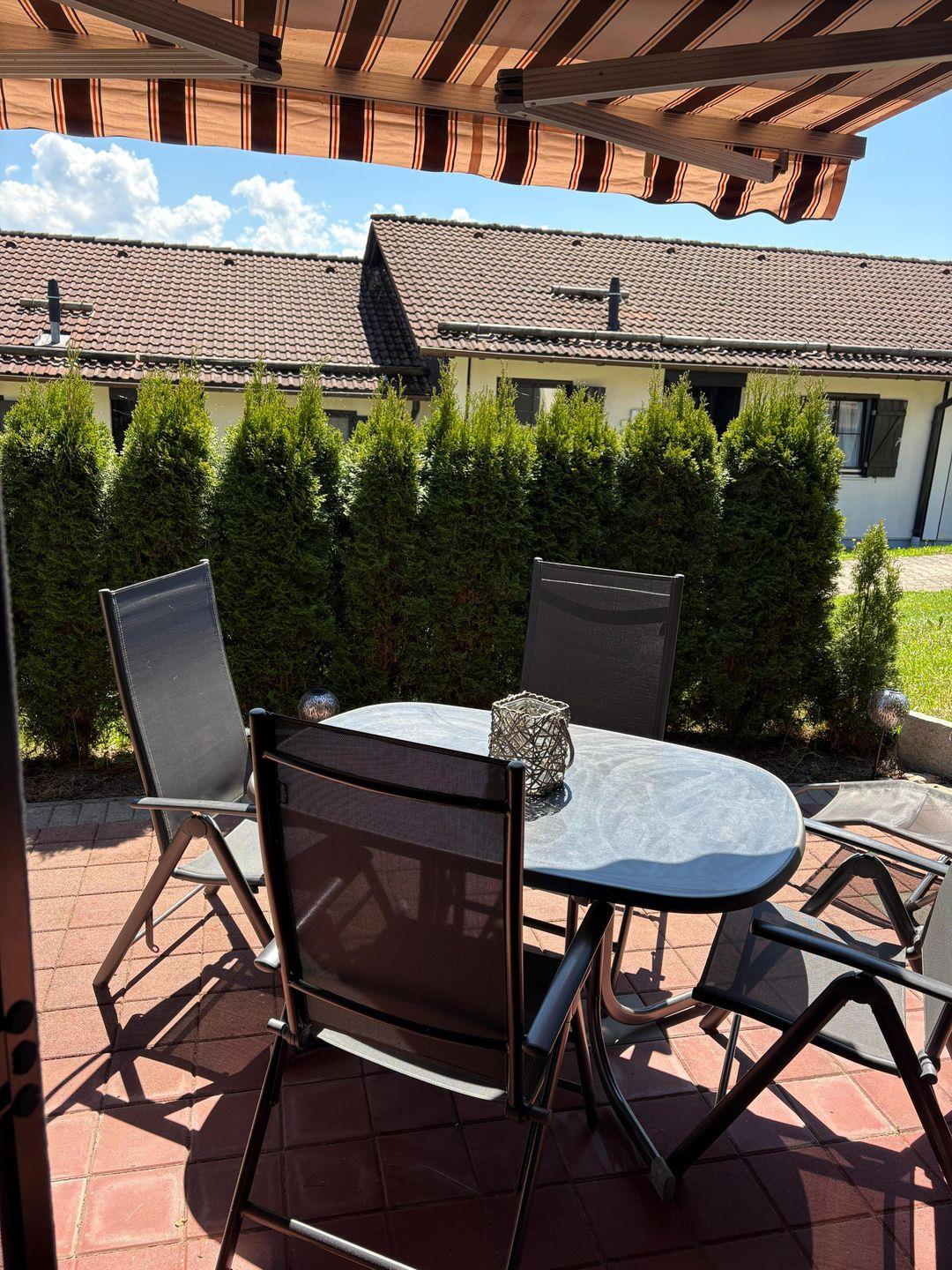 Im Feriendorf Hochbergle Haus 34 in Lechbruck am See erwarten Sie 64 m² Wohnkomfort mit zwei Schlafzimmern, einem Wohnzimmer mit Sofaecke sowie einer voll ausgestatteten Küche. Die überdachte Terrasse und der kostenlose Parkplatz bieten zusätzlichen Komfort. Haustiere sind willkommen, Kinder und Babys ebenfalls. Das Haus ist rauchfrei und verfügt über Fliegengitter sowie Sichtschutz an allen Fenstern.