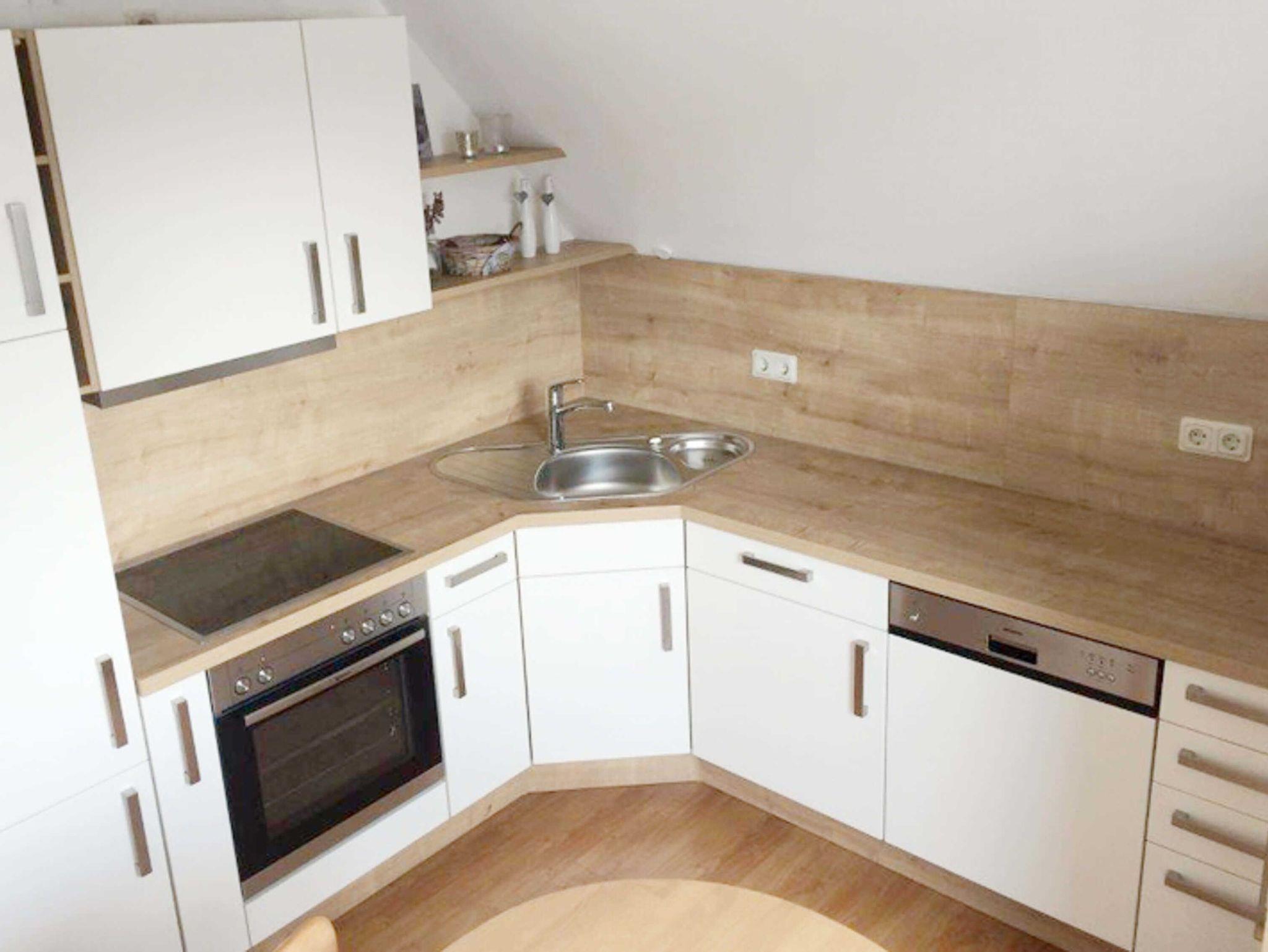 Küche: Einbauküche mit Cerankochfeld und Backofen, Kühl- Gefrierkombination, Spülmaschine, Mikrowelle, Kaffeemaschine, Toaster etc.