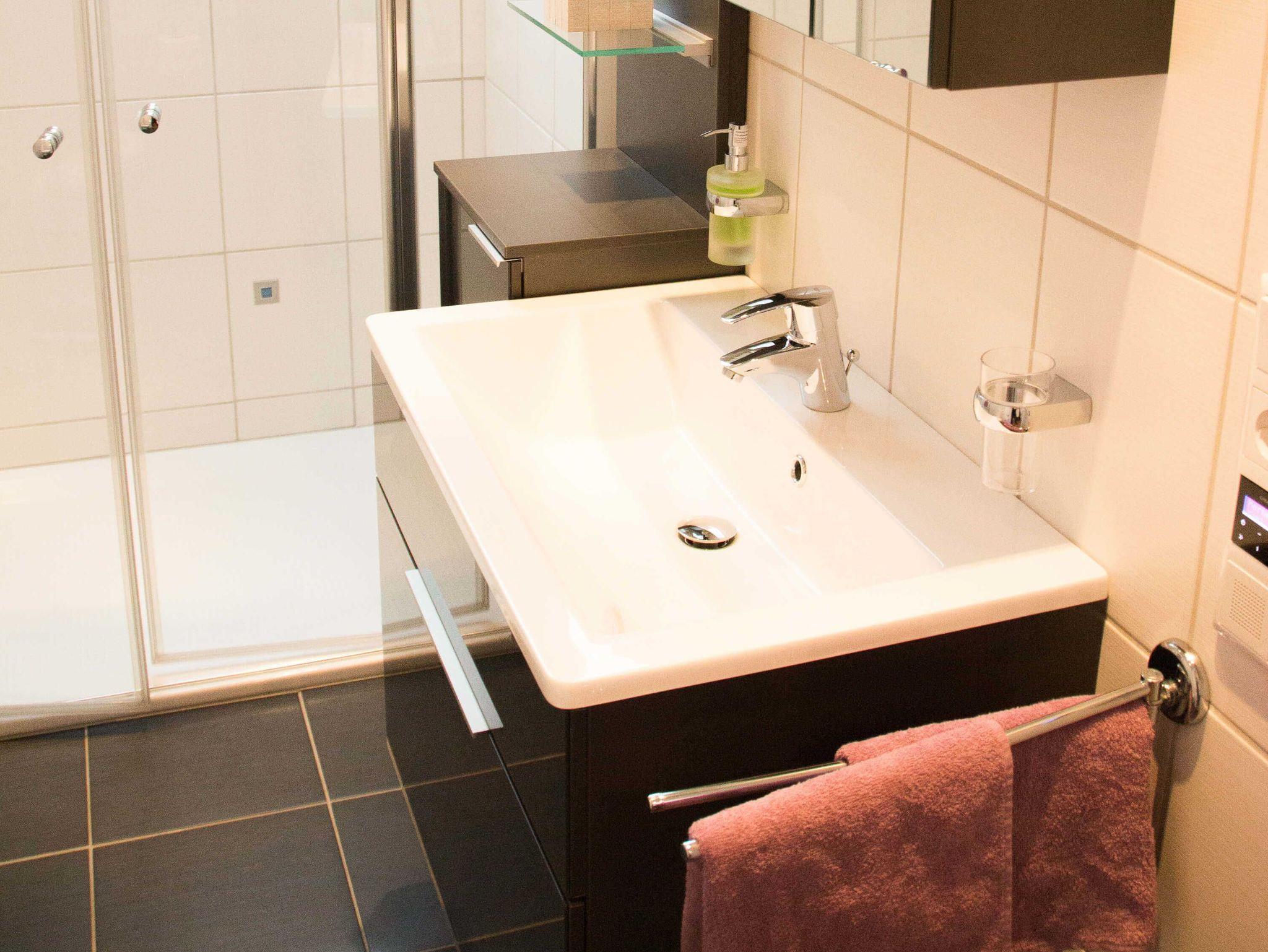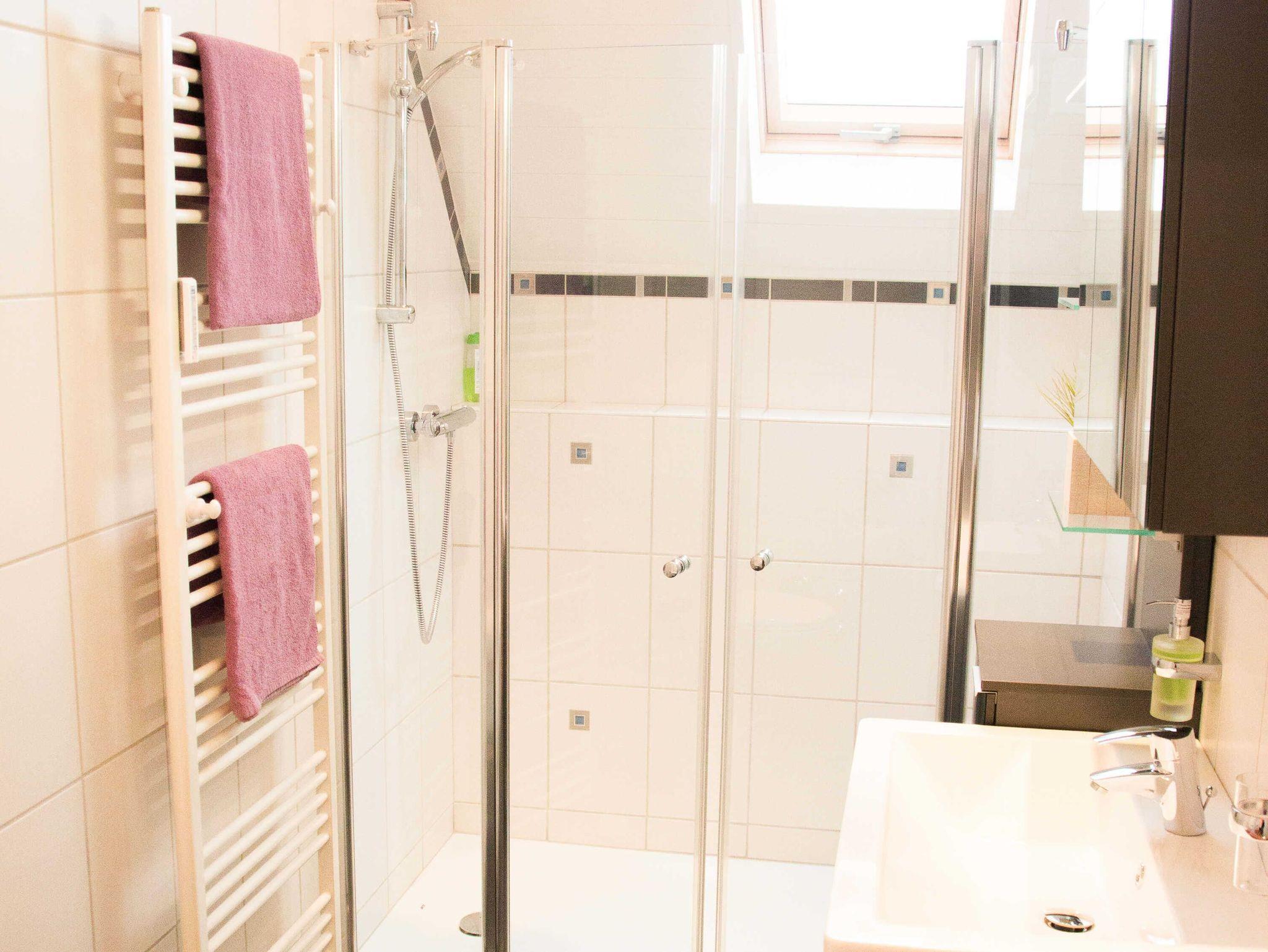Bad: Begehbare Dusche, Handtuchheizkörper, Fön, Kosmetikspiegel