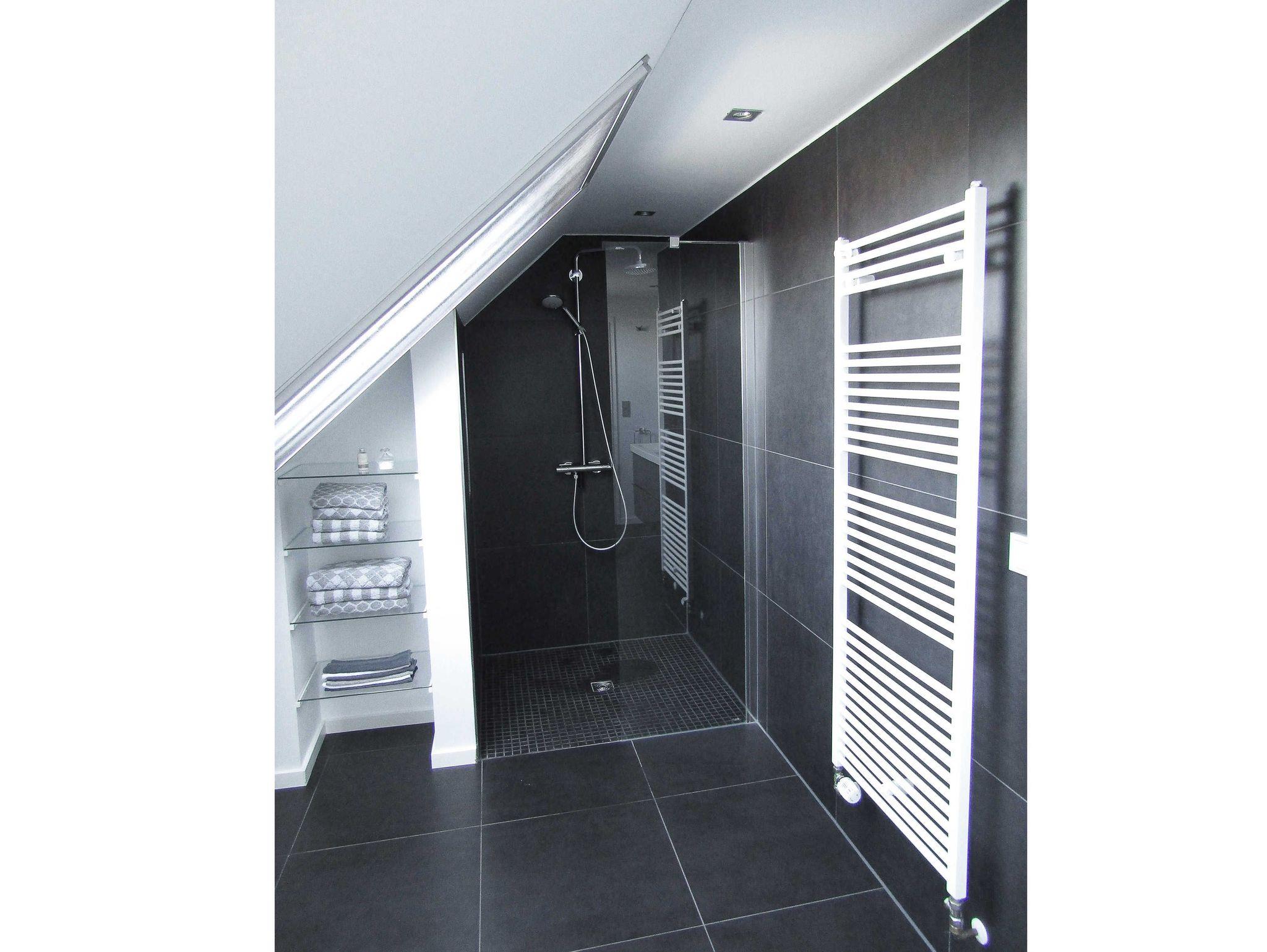o sehr geräumiges Badezimmer mit ebenerdiger Dusche, Föhn