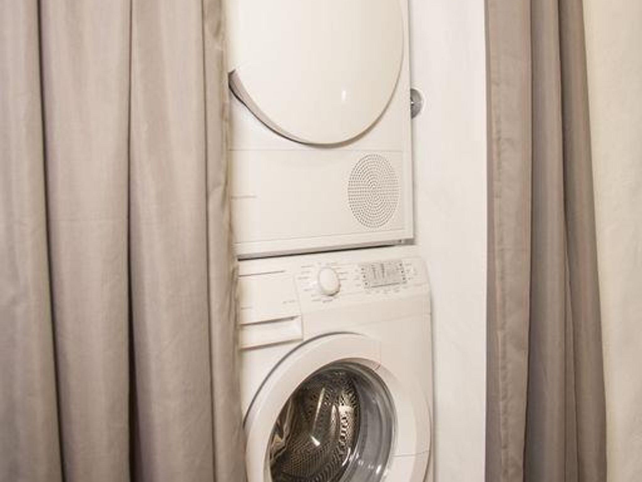 Bügelbrett, Bügeleisen, Reinigungsmittel, Staubsauger, Trockner und Waschmaschine finden Sie ebenfalls vor.