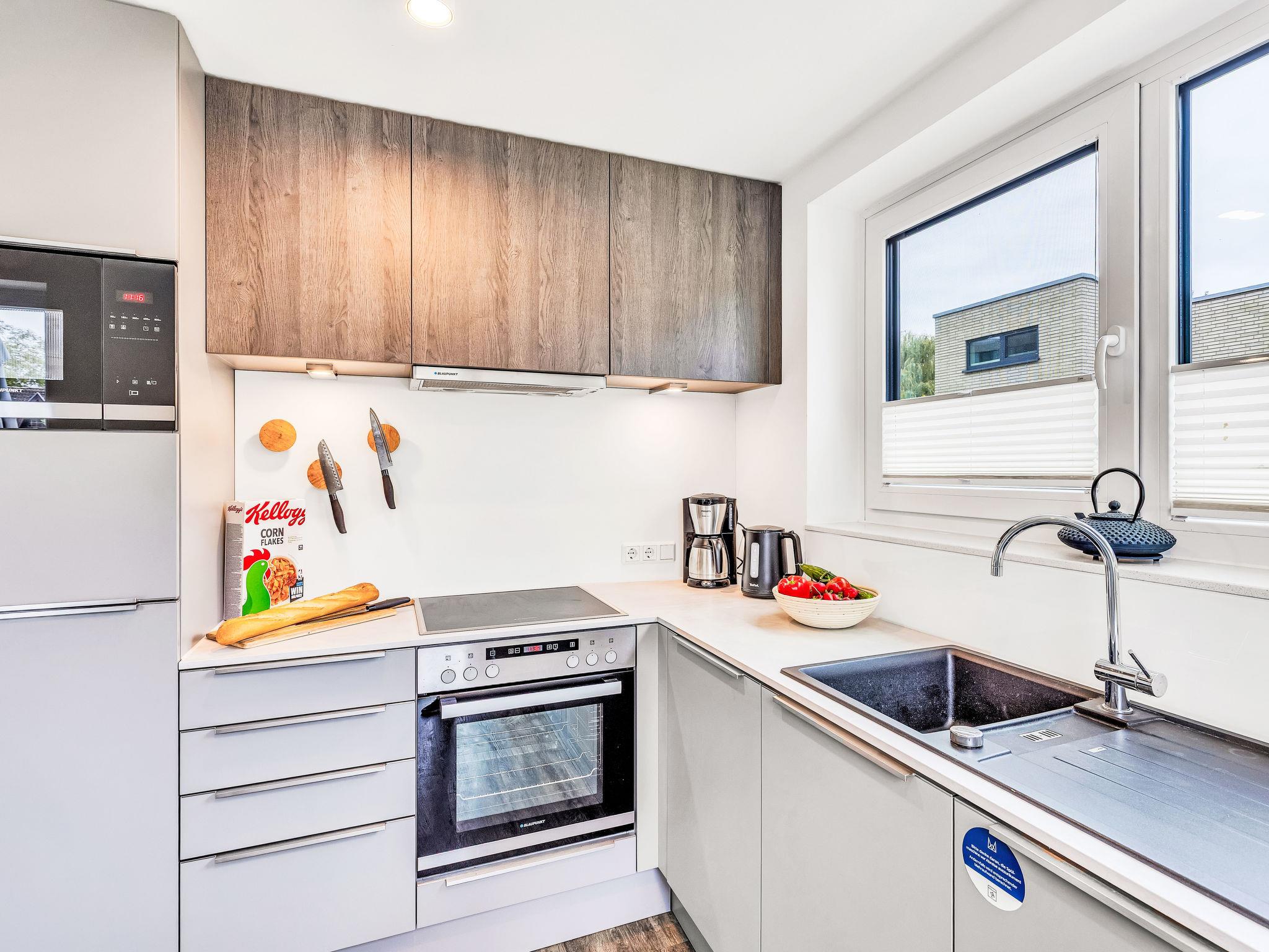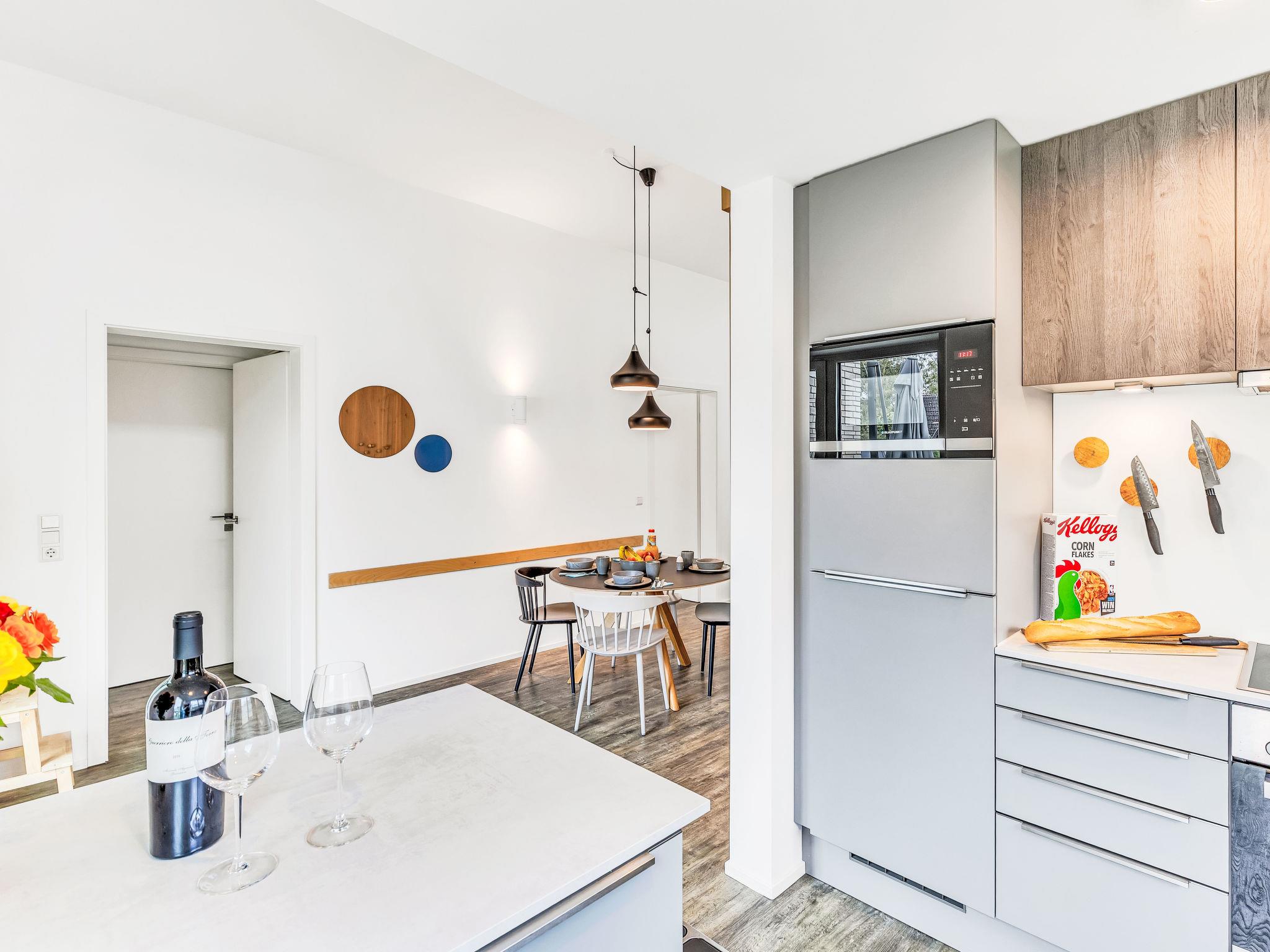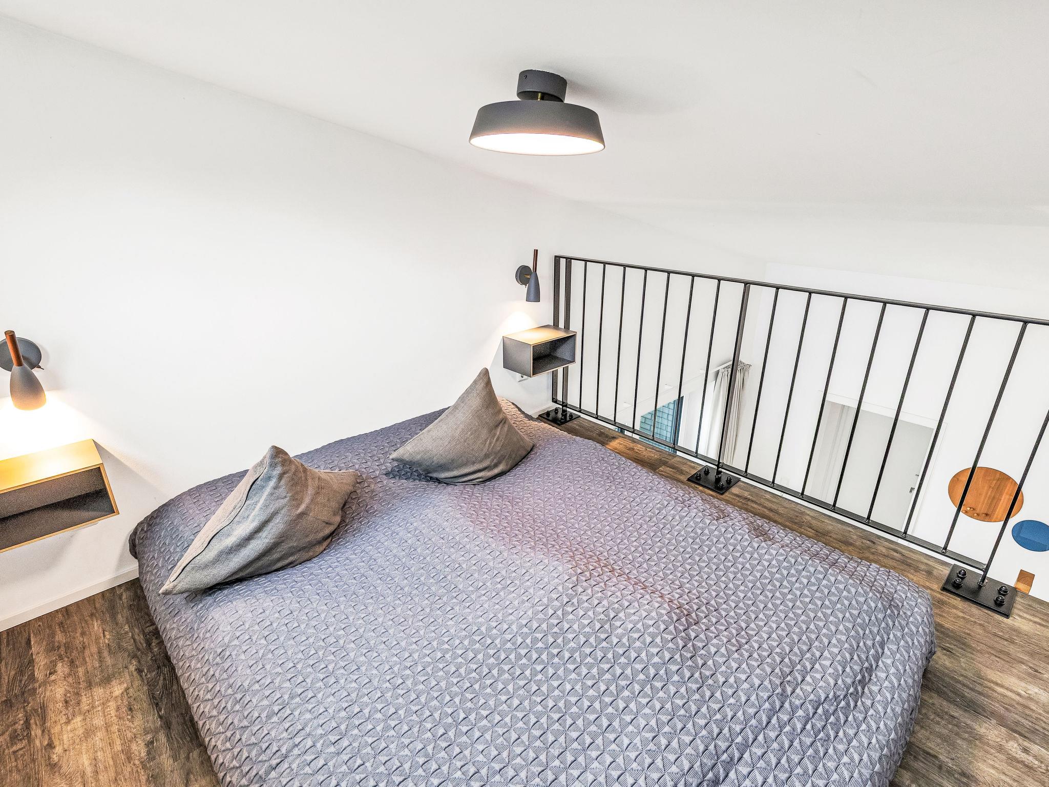 "Schmidt", 3-room house 85 m2 on 2 levels. Tasteful and cosy furnishings: living/dining room with satellite TV (flat screen). Exit to the terrace. 2 rooms, each room with 1 double bed (2 x 90 cm, length 200 cm). Open kitchen (oven, dishwasher, 4 ceramic glass hob hotplates, toaster, kettle, microwave, electric coffee machine). Bath/WC, shower/WC. Upper floor: (ladder) open gallery with sloping ceilings with 2 sleeping facilities. Terrace. Terrace furniture, electric barbecue. Facilities: washing machine, dryer, sauna, children's high chair (extra), hair dryer. Internet (WiFi, free). Please note: non-smoking house. Smoke alarm.