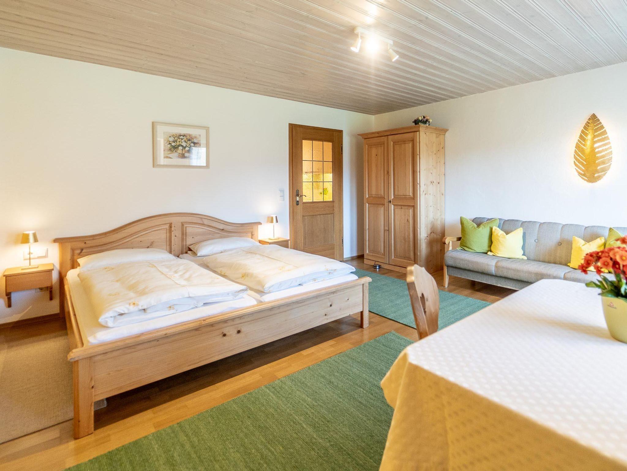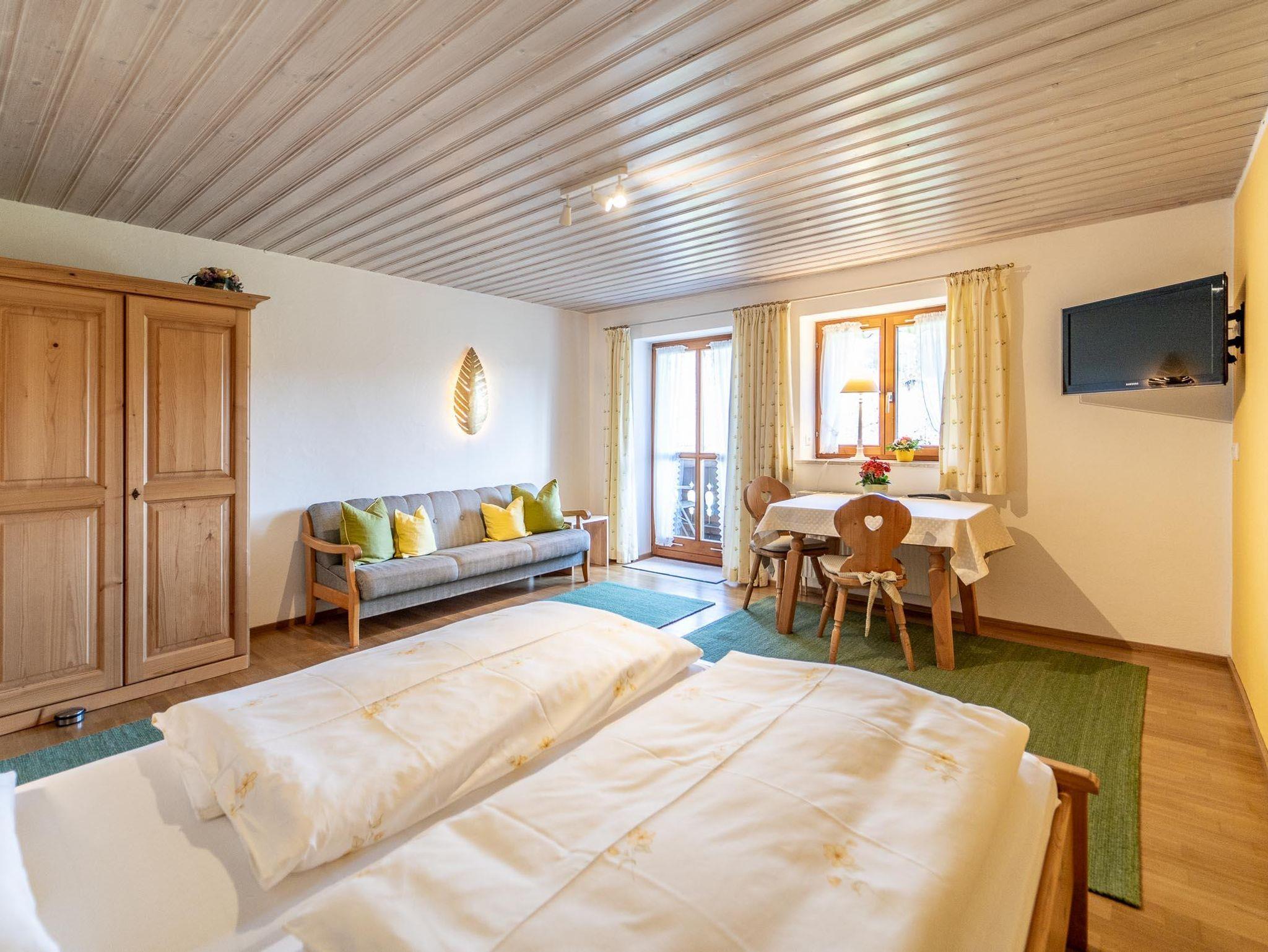 Die Ferienwohnung „Brauneck“ im Katharinenhof Lenggries bietet auf 36 m² einen idealen Rückzugsort für zwei Personen inmitten der Bayerischen Alpen. Sie besticht durch stilvolle Massivholzmöbel, Holzböden und harmonische grün-gelbe Töne. Der kombinierte Wohn- und Schlafbereich mit Doppelbett lädt zum Entspannen ein. Die gut ausgestattete Küchenzeile mit Backofen, Herd, Kaffeefiltermaschine und Toaster ermöglicht Selbstversorgung. Vom überdachten Süd-Ost-Balkon genießen Sie einen freien Blick auf die Berge. Weitere Annehmlichkeiten: Bad mit Dusche, Haarföhn, Flachbild-TV, WLAN, Bettwäsche sowie Handtücher und Geschirrtücher (Wechsel ab der 2. Woche). Ideal für Naturliebhaber.