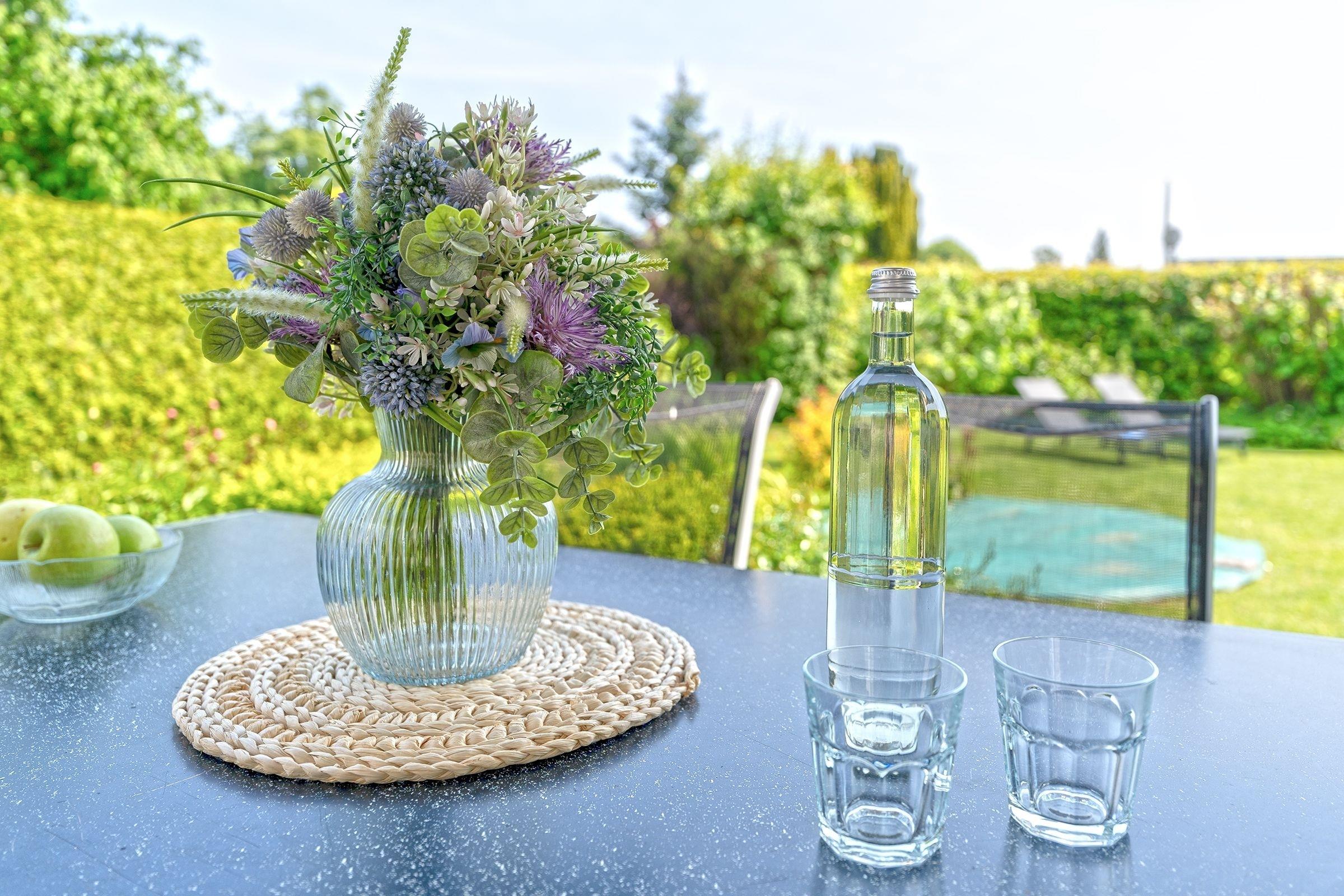 Ein PKW-Außenstellplatz ist direkt auf dem Grundstück für Sie reserviert und auch das Abstellen Ihrer Fahrräder ist außen am Haus möglich. Das Grundstück ist komplett eingezäunt und mit einem Gartentor versehen. Für die kleinen Gäste stehen ein Kinderhochstuhl und ein Kinderreisebettchen bereit.