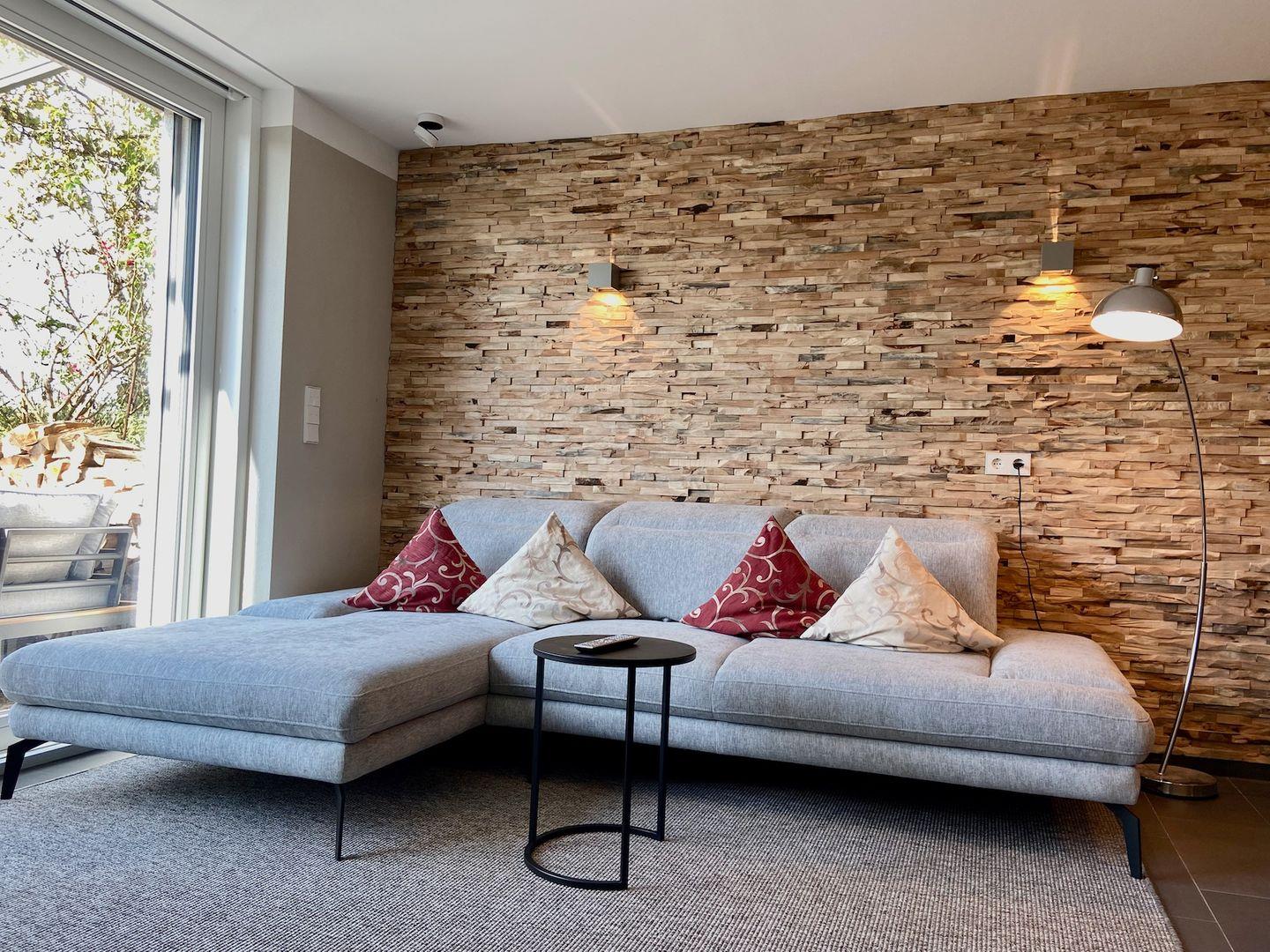 Ein großer Flach-TV an der Wand; elektrische Außenjalousien; dimmbare Lichttechnik, moderne Decken-Einbaustrahler und eine gute WLAN-Verbindung runden die Komfortausstattung dieser außergewöhnlichen Terrassenwohnung ab. Waschmaschine und Trockner kann nach Terminabsprache mit genutzt werden.