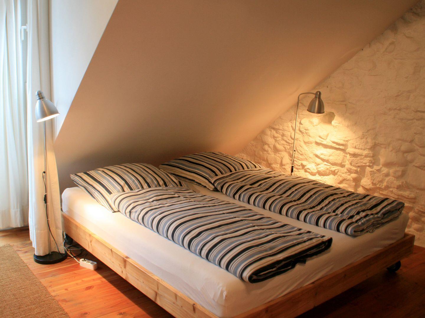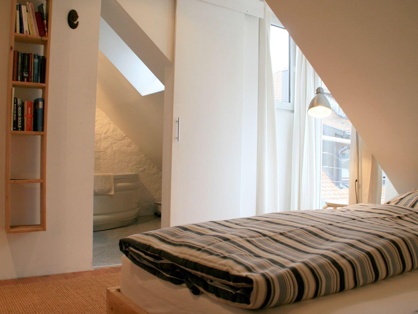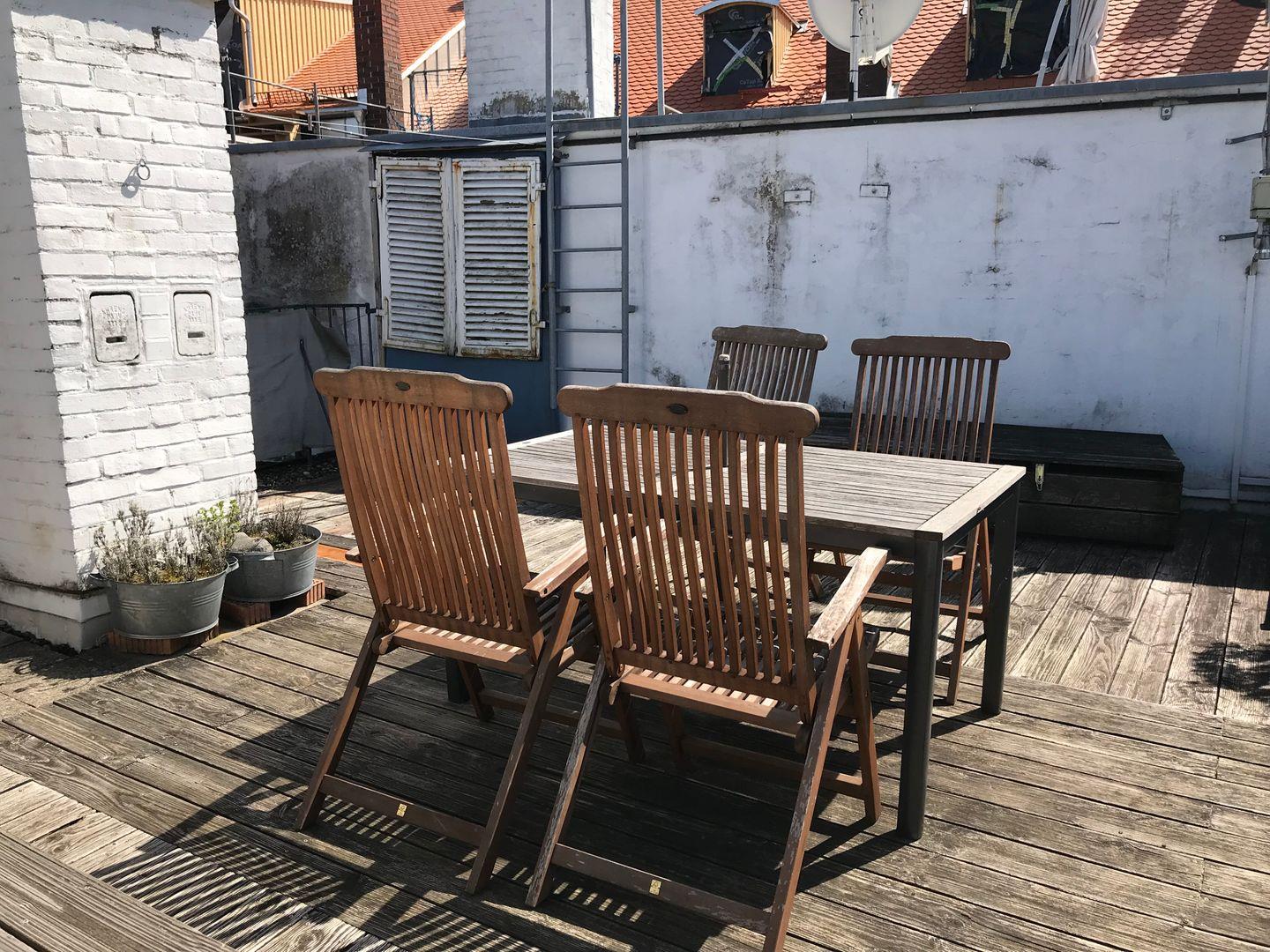 Diese außergewöhnliche Nichtraucher-Ferienwohnung befindet sich im 2. und 3. OG eines denkmalgeschützten Hauses aus dem 17. Jahrhundert. Sie verfügt auf 100 qm über 3 Schlafzimmer (1 Doppelbett und 2 Einzelbetten), 2 Bäder, 1 Esszimmer, 1 Wohnzimmer mit TV und Radio, eine bestuhlte Dachterrasse mit Liege und Sonnenschirm, eine Küche mit Kühlschrank, Herd, Backofen und Kochutensilien sowie eine separate Teeküche.