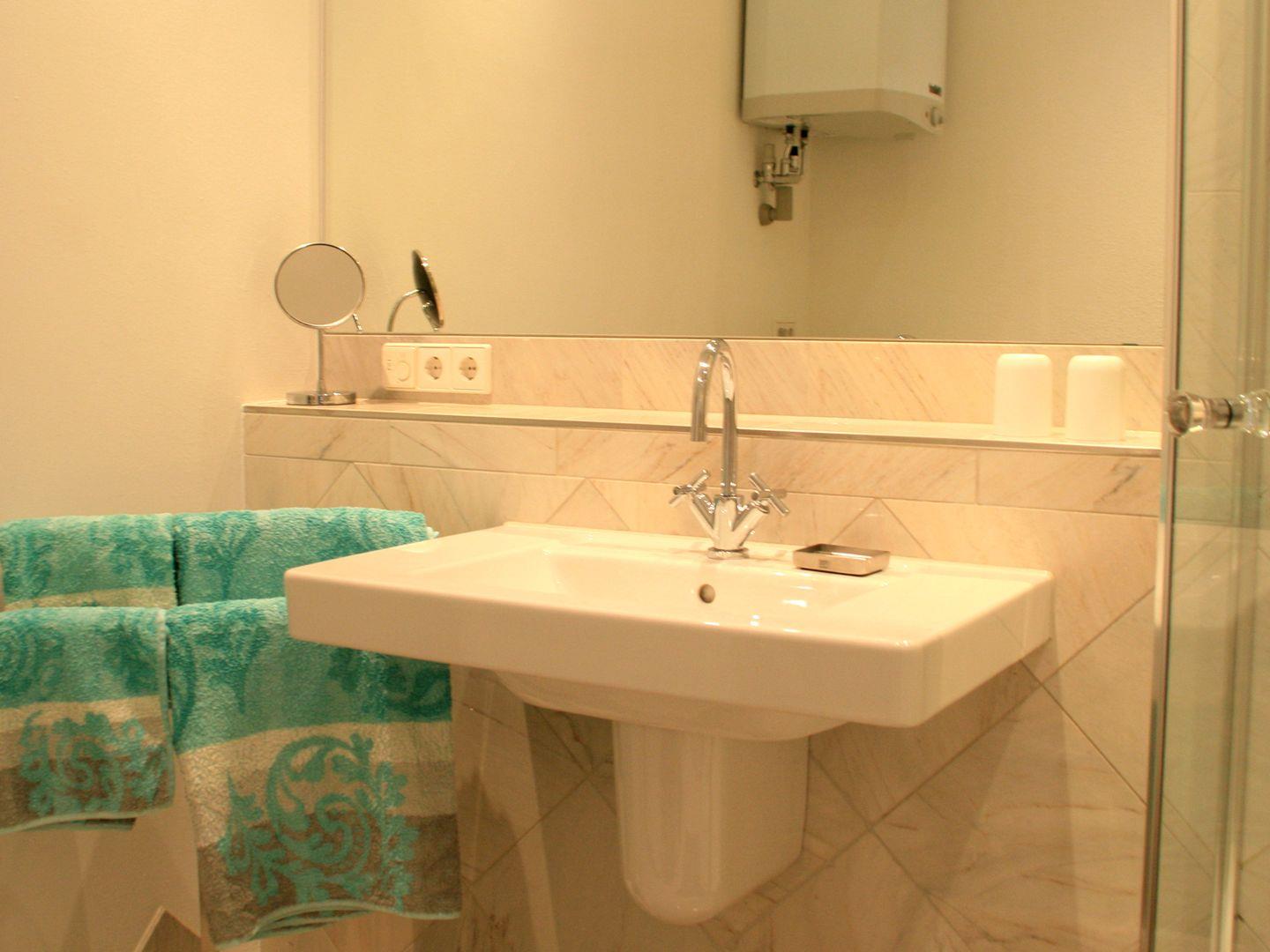 Die Wohnung besticht durch zwei geräumige und ruhig gelegene Schlafzimmer, die Ihnen erholsame Nächte garantieren. Das Badezimmer, gestaltet mit edlem Naturmarmor, bietet eine großzügige Dusche, moderne Ausstattung und eine angenehme Fußbodenheizung.