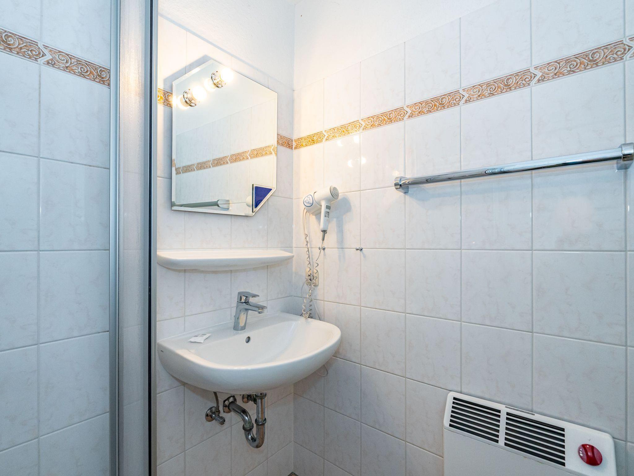 Im 1. Obergeschoss befindet sich das vierte Apartment. Der Wohn- und Essbereich mit 2 Schlafkojen sowie das separate Schlafzimmer mit 2 Schlafkojen bieten auf insgesamt 50 Quadratmeter Platz für 4 Personen. Das Badezimmer ist ausgestattet mit Dusche, WC und Waschbecken.