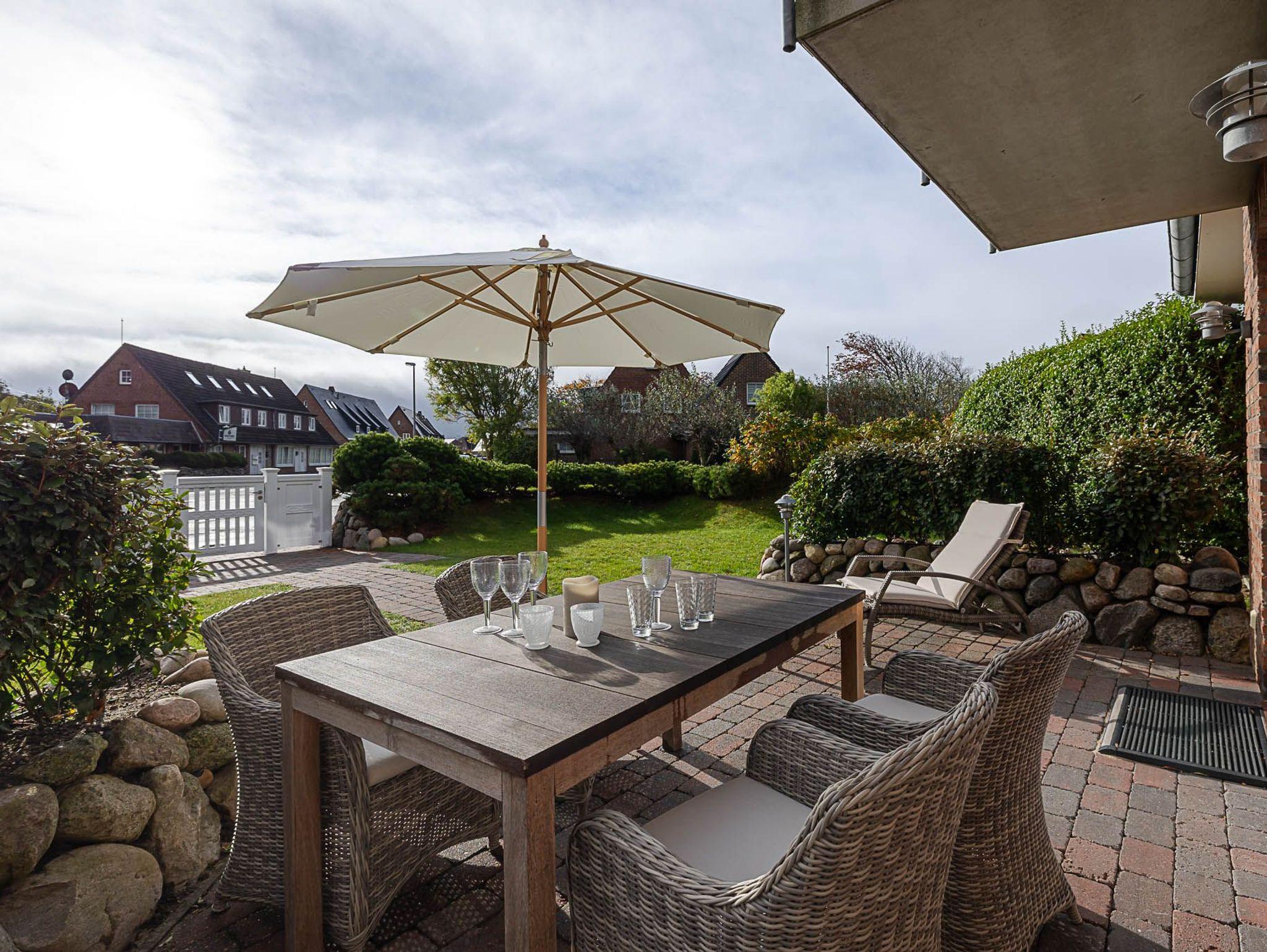 Der grüne Garten bietet Raum für sonnige Stunden und ruhige Momente im Freien ? hier spüren Sie die salzige Luft und hören das Rauschen der Nordsee ganz nah. Und dank des eigenen Parkplatzes beginnt Ihr Urlaub bereits stressfrei bei der Ankunft.