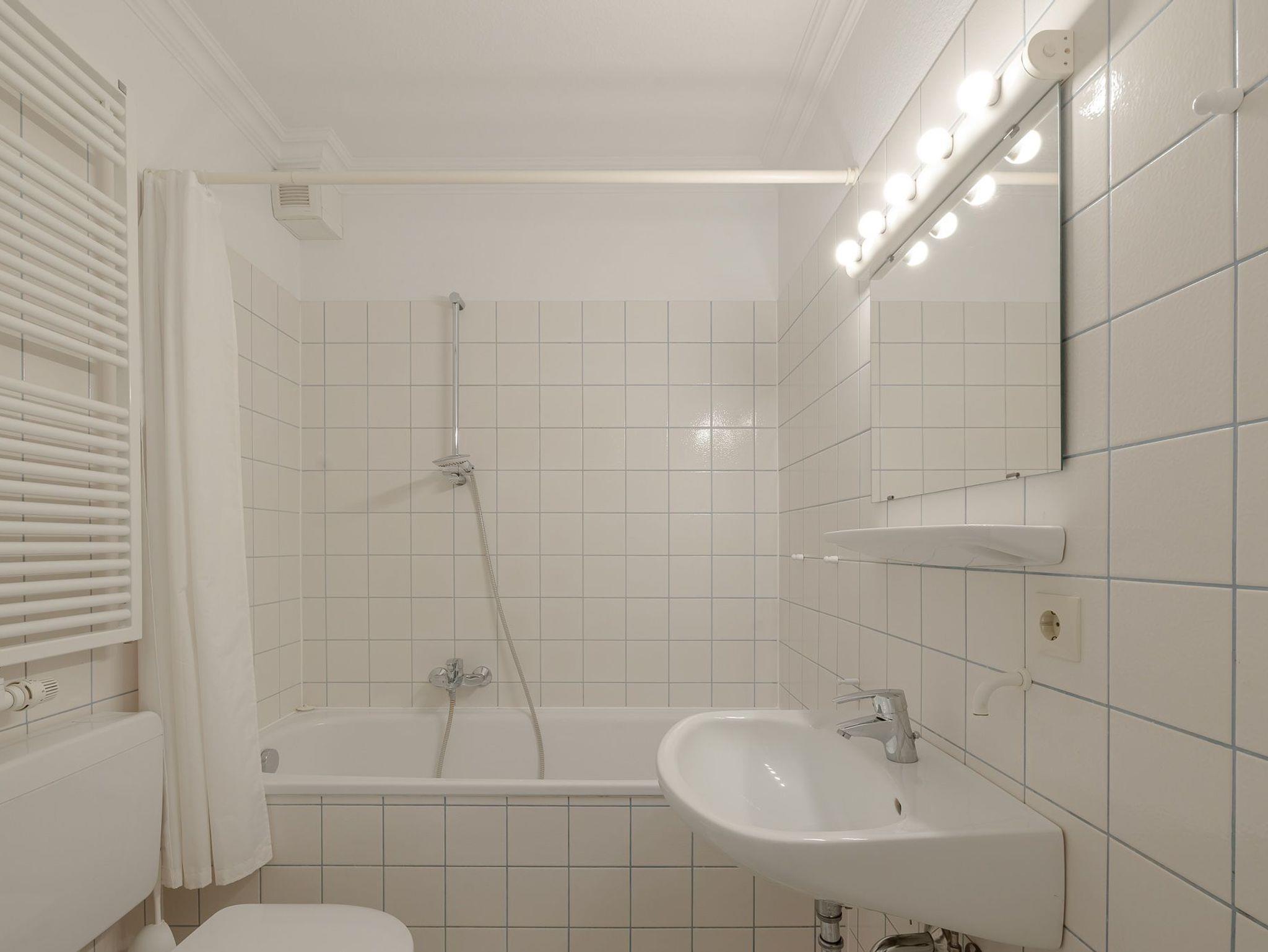 Die separate, funktional ausgestattete Küche ermöglicht eine flexible Selbstversorgung. Das kleine Badezimmer ist praktisch gestaltet. Ergänzt wird die Wohnung durch einen kleinen Gartenanteil, der sich ideal zum Verweilen im Freien eignet.