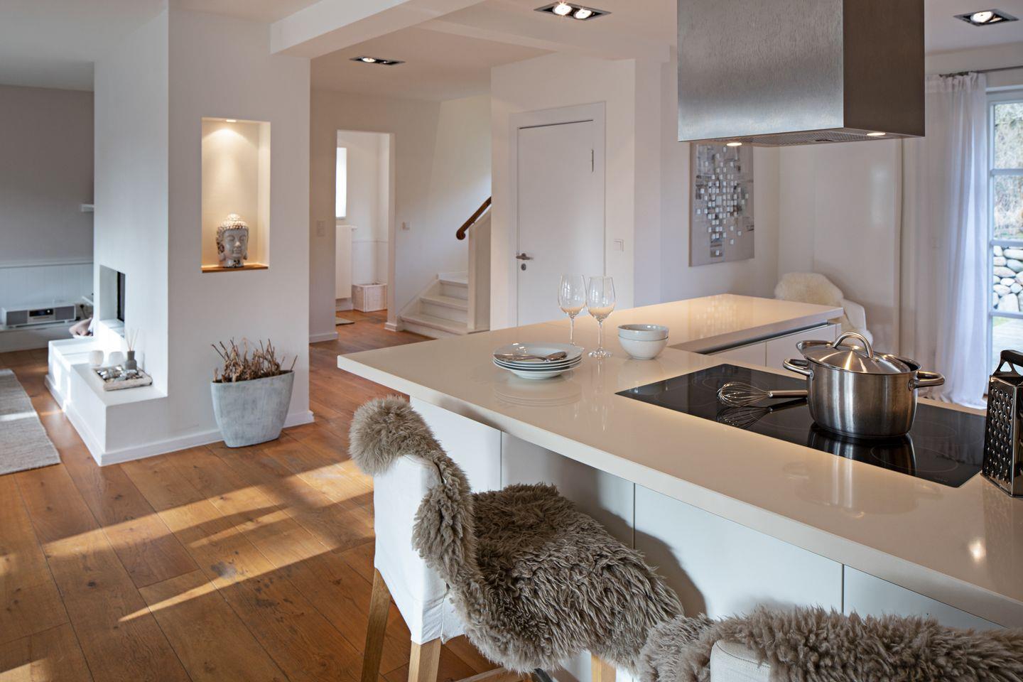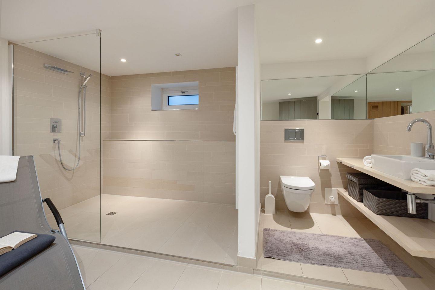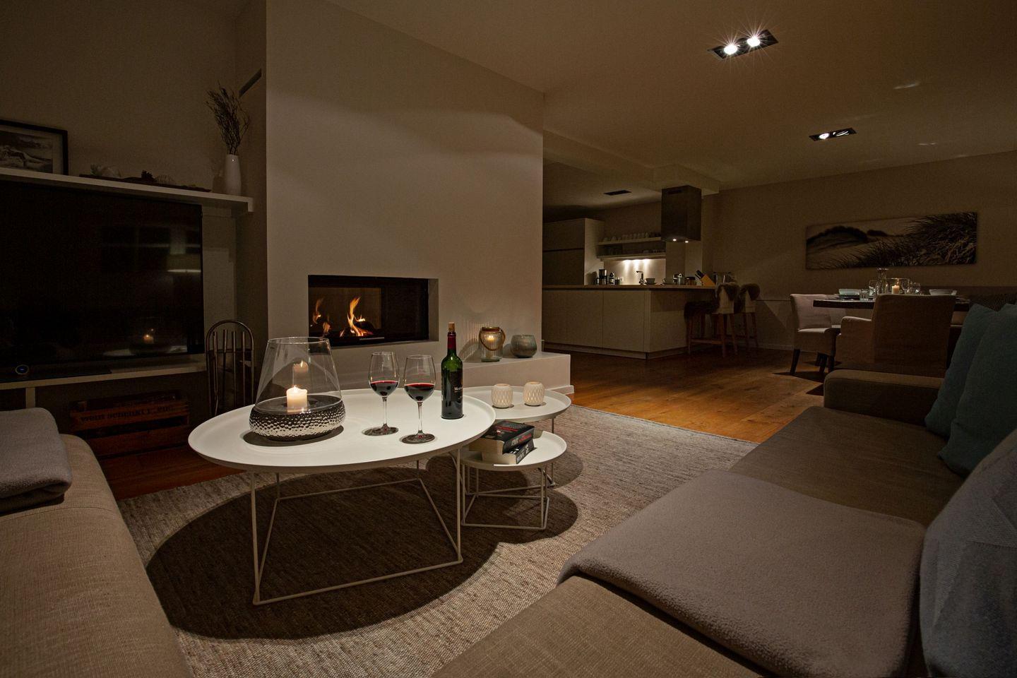Die offene Wohnküche ist ein echtes Highlight und lädt zum gemeinsamen Kochen und Verweilen ein. Sie ist mit hochwertigen Geräten ausgestattet, darunter ein Induktionsherd, eine Spülmaschine, eine Mikrowelle und eine Nespresso-Maschine. Der große Essbereich und die gemütliche Sofaecke im Wohnzimmer sind perfekt für gesellige Abende nach einem erlebnisreichen Tag an der frischen Luft. Für Unterhaltung sorgt ein modernes Entertainment-System mit mehreren TV-Geräten, einer HiFi-Anlage und einem Blu-ray-Spieler.