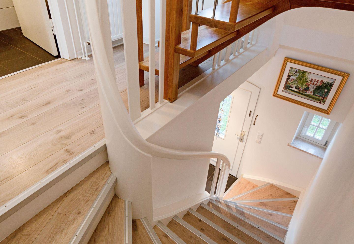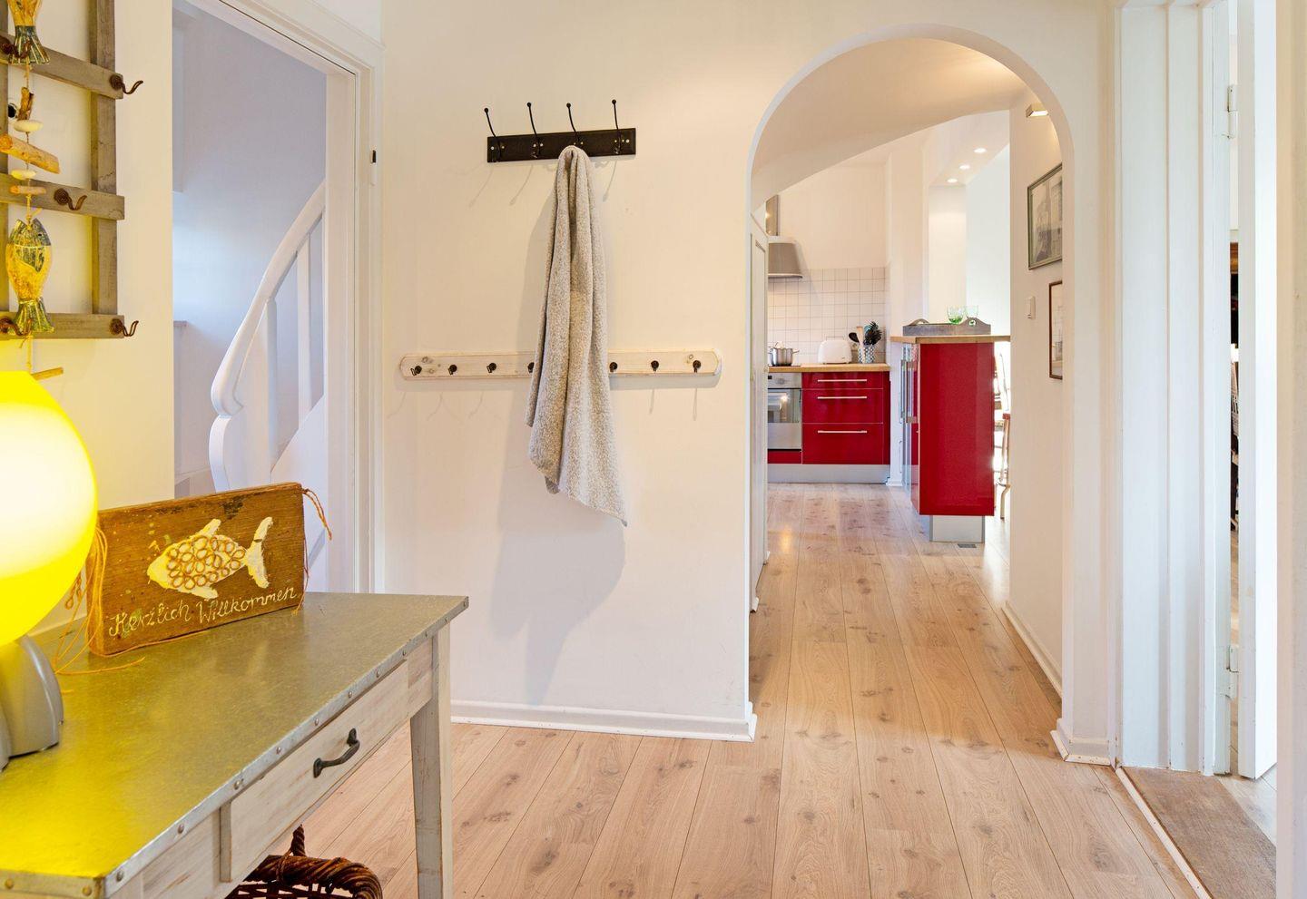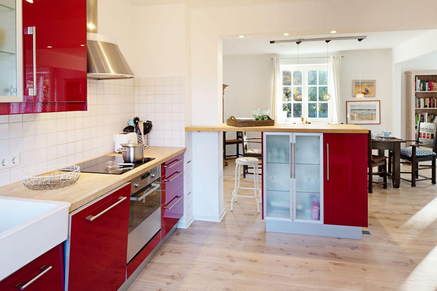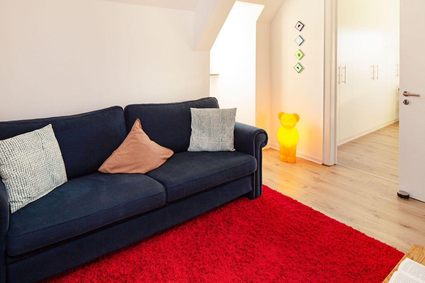 Mit drei Schlafzimmern, drei Bädern, einem Aufenthaltsraum mit Sofa und Fernseher und einem Wohnzimmer mit angrenzender offener Küche ist Platz für bis zu sechs Personen. Im 1. OG (geschlossene Treppe) befindet sich ein Schlafzimmer mit Doppelbett und ein Schlafzimmer mit zwei Einzelbetten, die auch zu einem Doppelbett ausgezogen werden können. In das Dachgeschoss führt eine eher stark ansteigende, offene Treppe mit einem weiteren Schlafzimmer mit zwei Einzelbetten. Im Außenbereich lädt Ihr sonniger Garten mit großer Terrasse mit Strandkorb und Gartenmöbeln zum Relaxen ein.