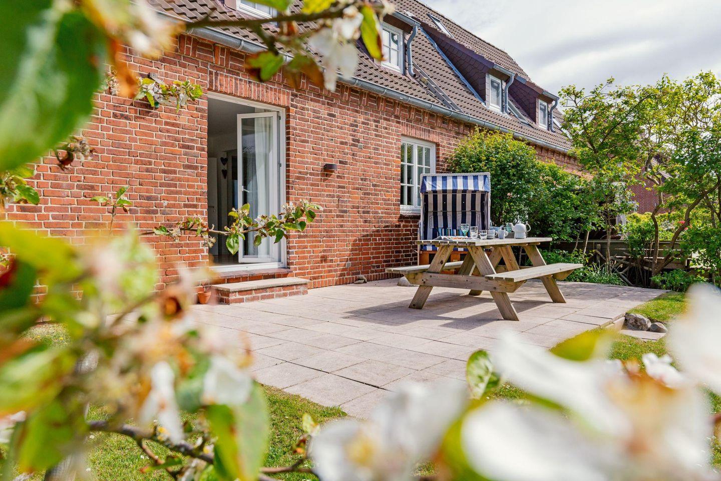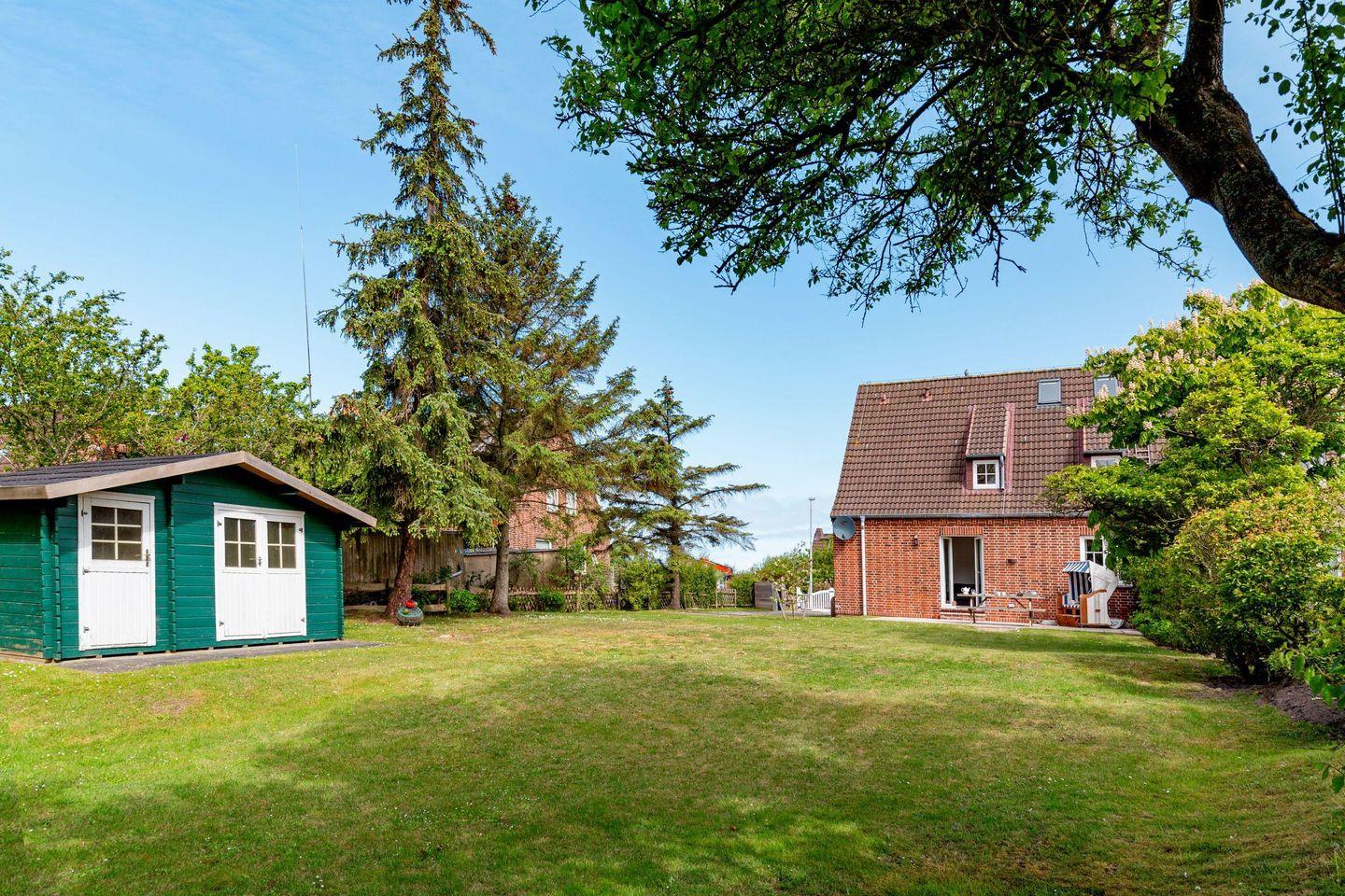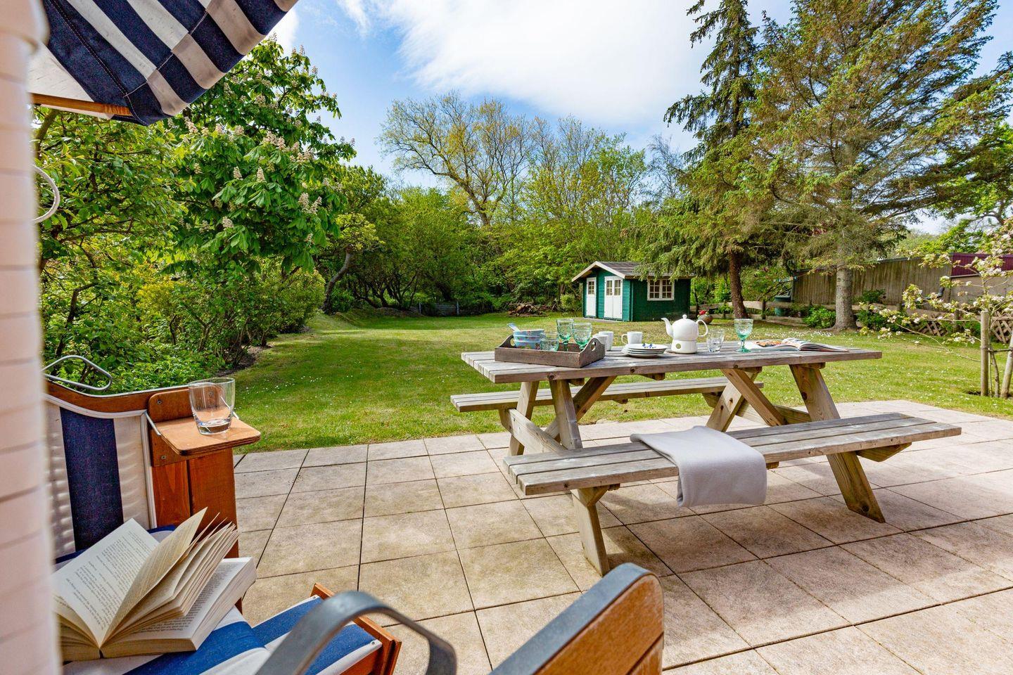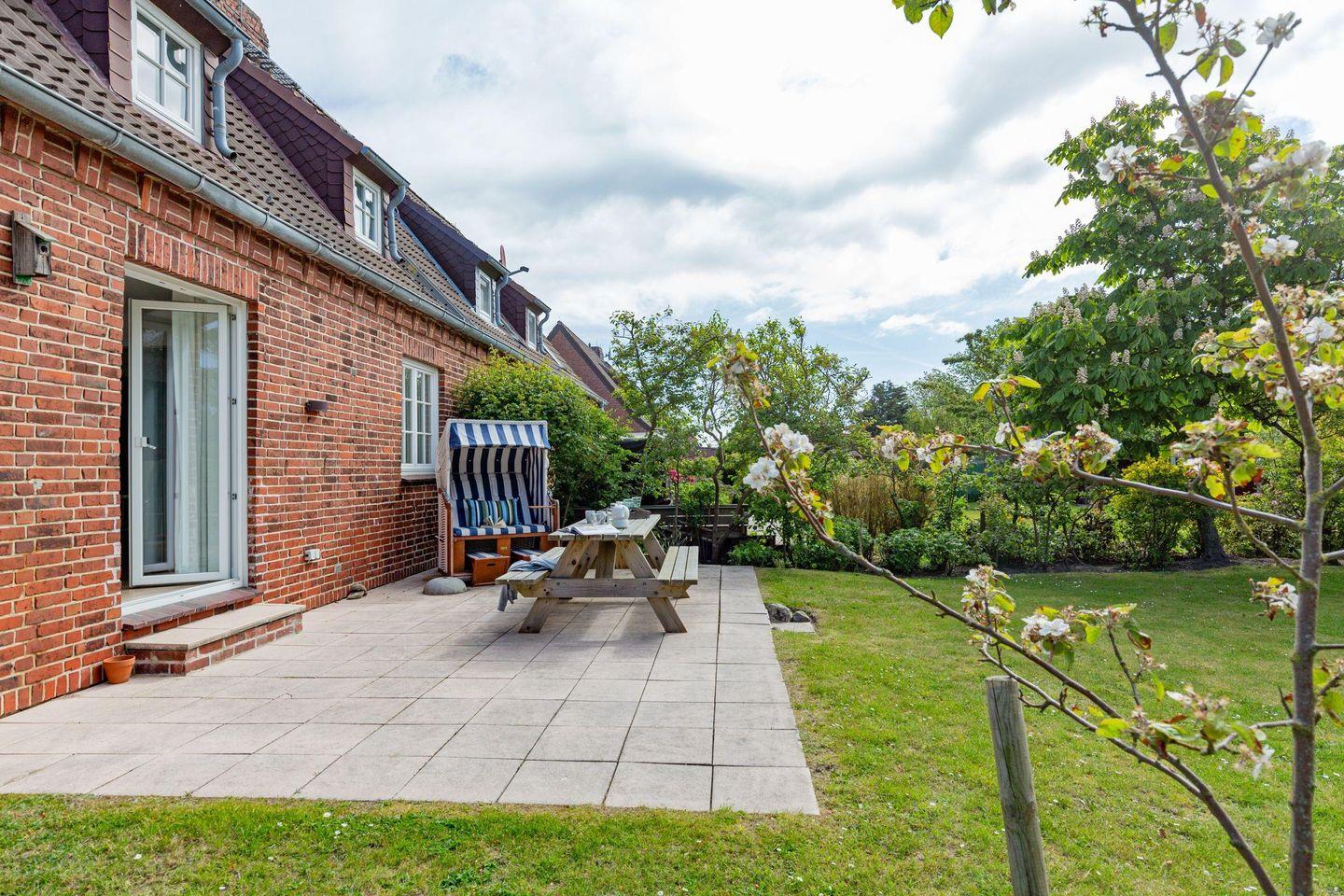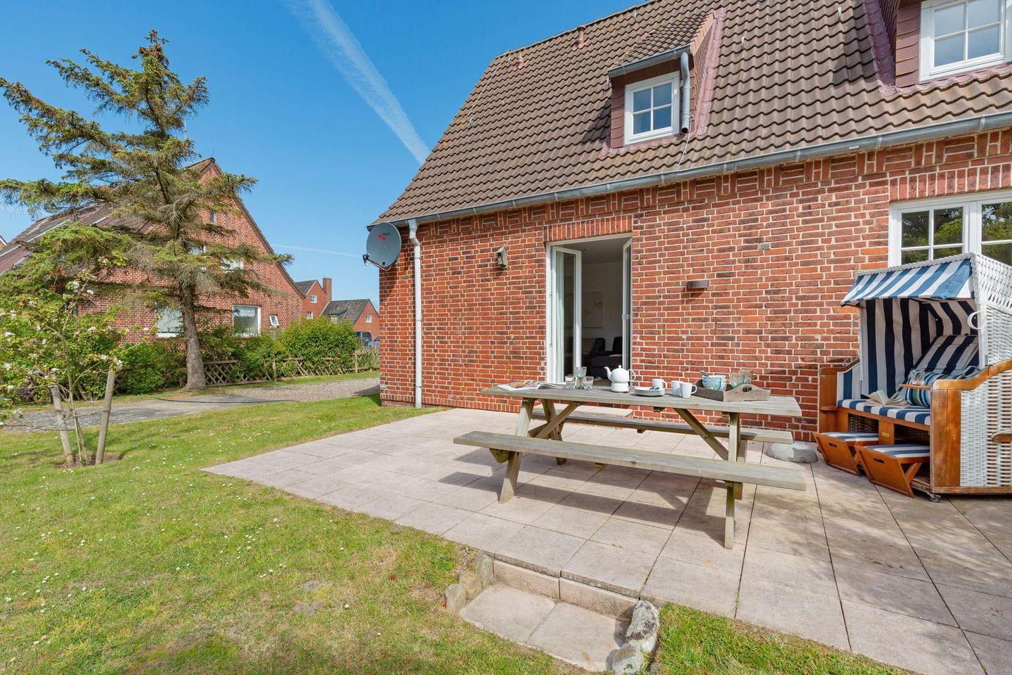 Großzügiges familienfreundliches Feriendoppelhaus für sechs Personen mit Garten, Terrasse und Strandkorb.