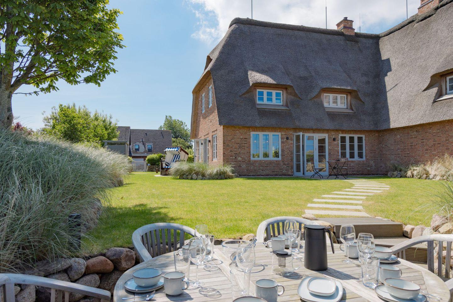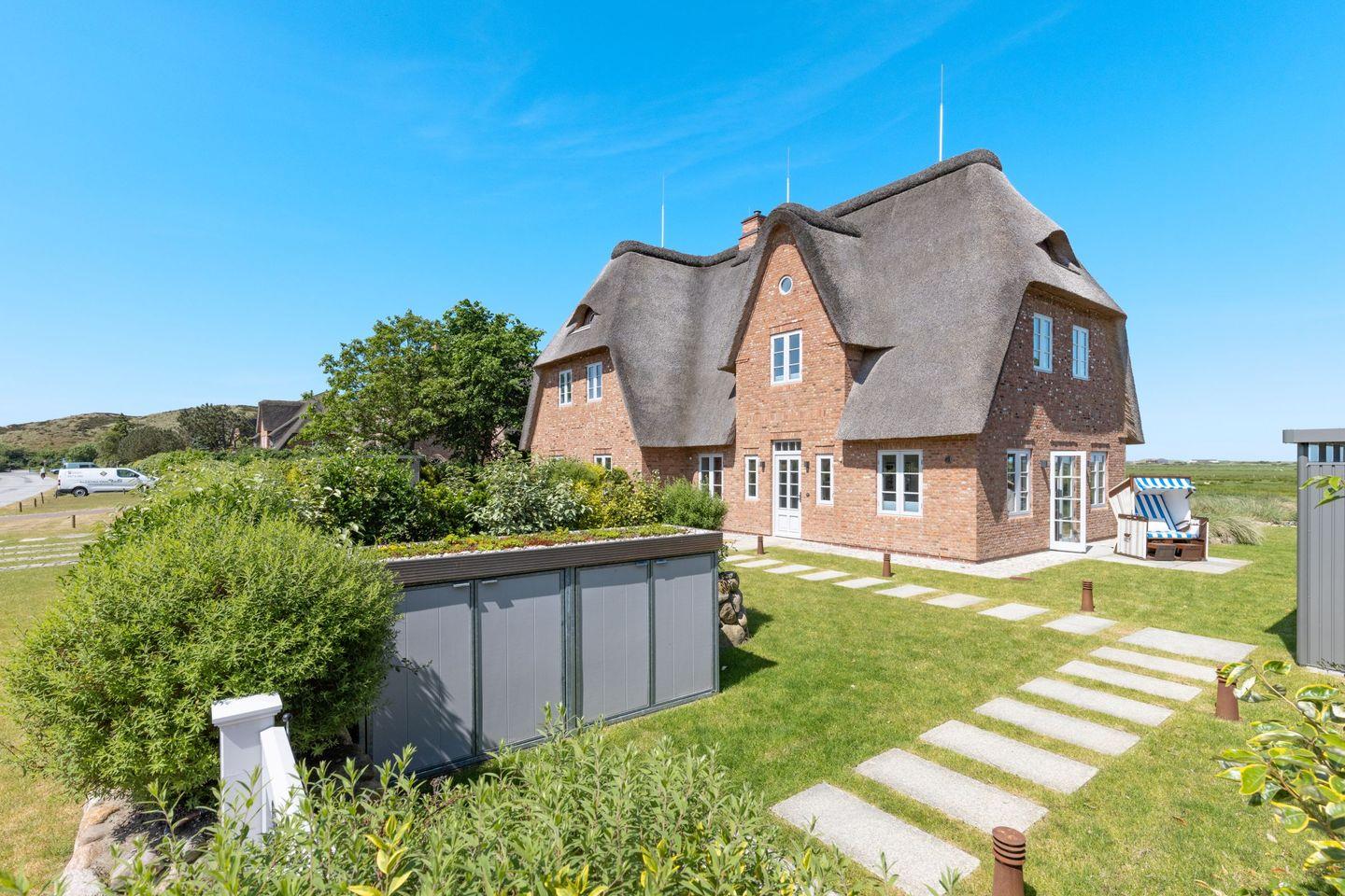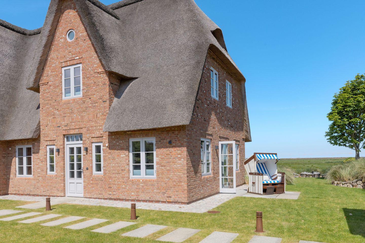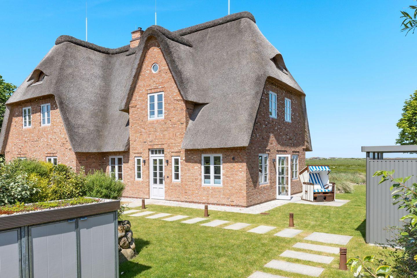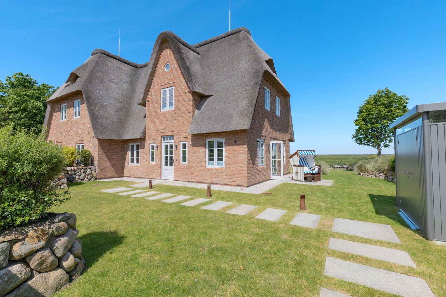Das Ferienhaus Westport heißt Sie herzlich willkommen und bietet auf großzügigen 140 m² Wohnfläche den idealen Rückzugsort für einen erholsamen Urlaub auf Sylt. Das stilvoll eingerichtete Reetdachhaus liegt in besonders ruhiger Lage direkt am Naturschutzgebiet Königshafen und begeistert mit einem traumhaften, unverbauten Blick über die Lister Fenne eine einzigartige Kulisse für entspannte Urlaubstage inmitten der Natur.