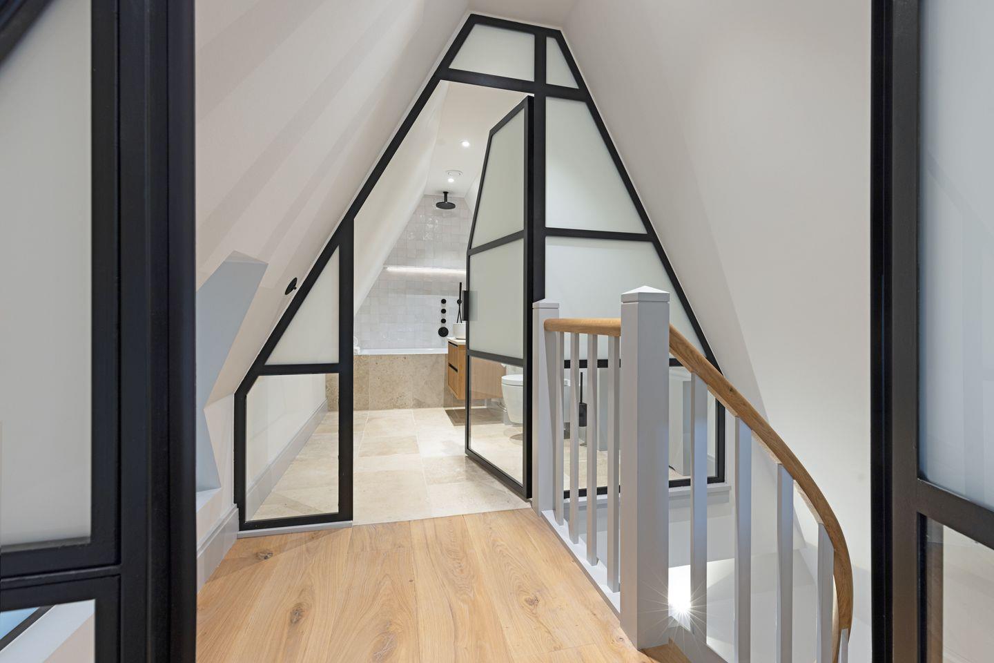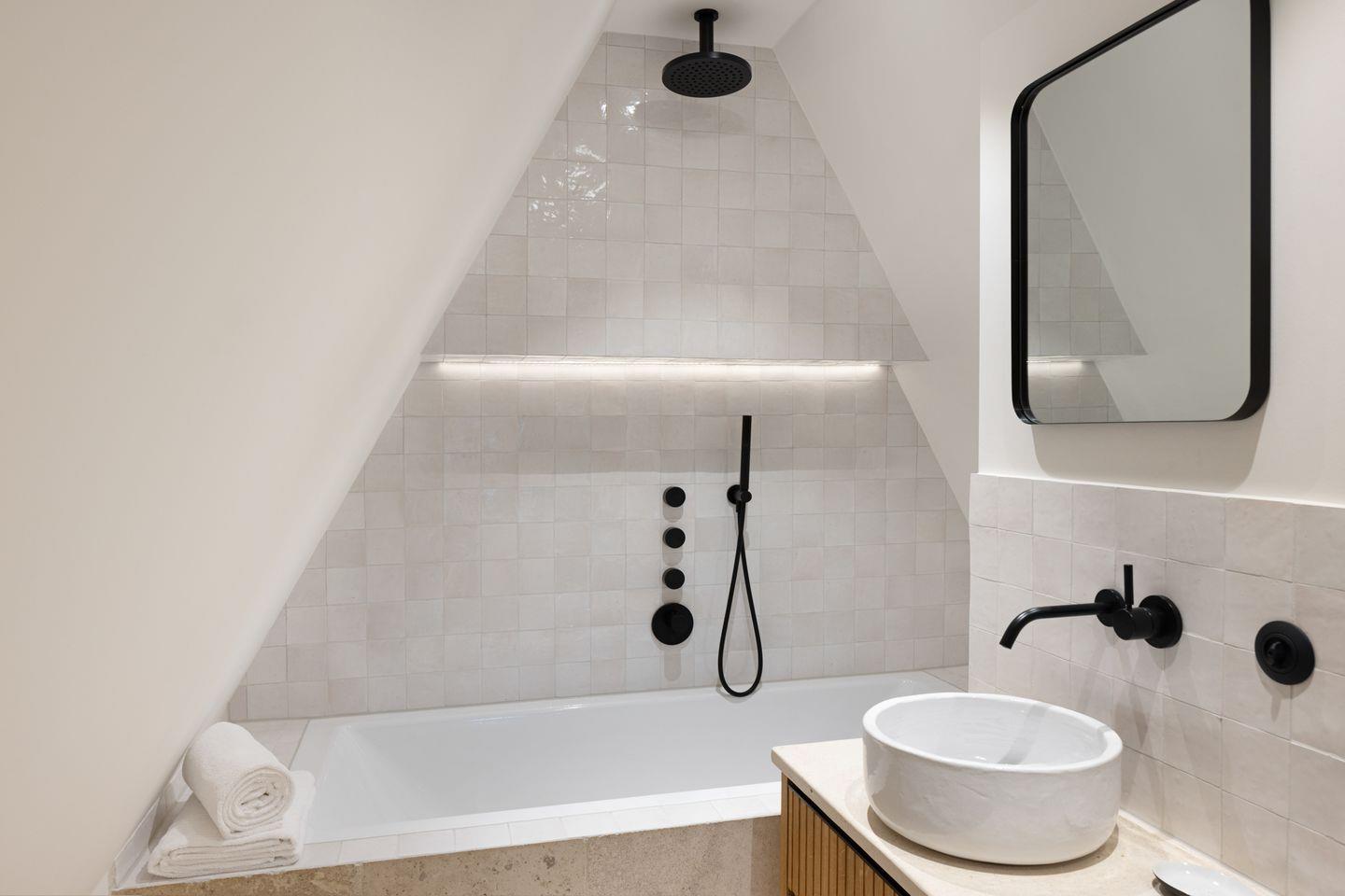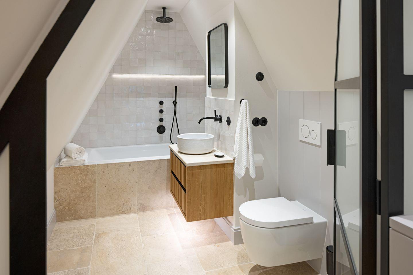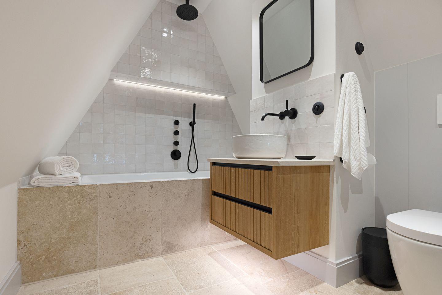 Das Dachgeschoss lädt mit einem separaten Ruheraum zum Entspannen und Zurückziehen ein. Ein weiteres Badezimmer mit Dusche und Badewanne sorgt hier für zusätzlichen Komfort und macht diesen Bereich zu einem idealen Ort für erholsame Stunden.