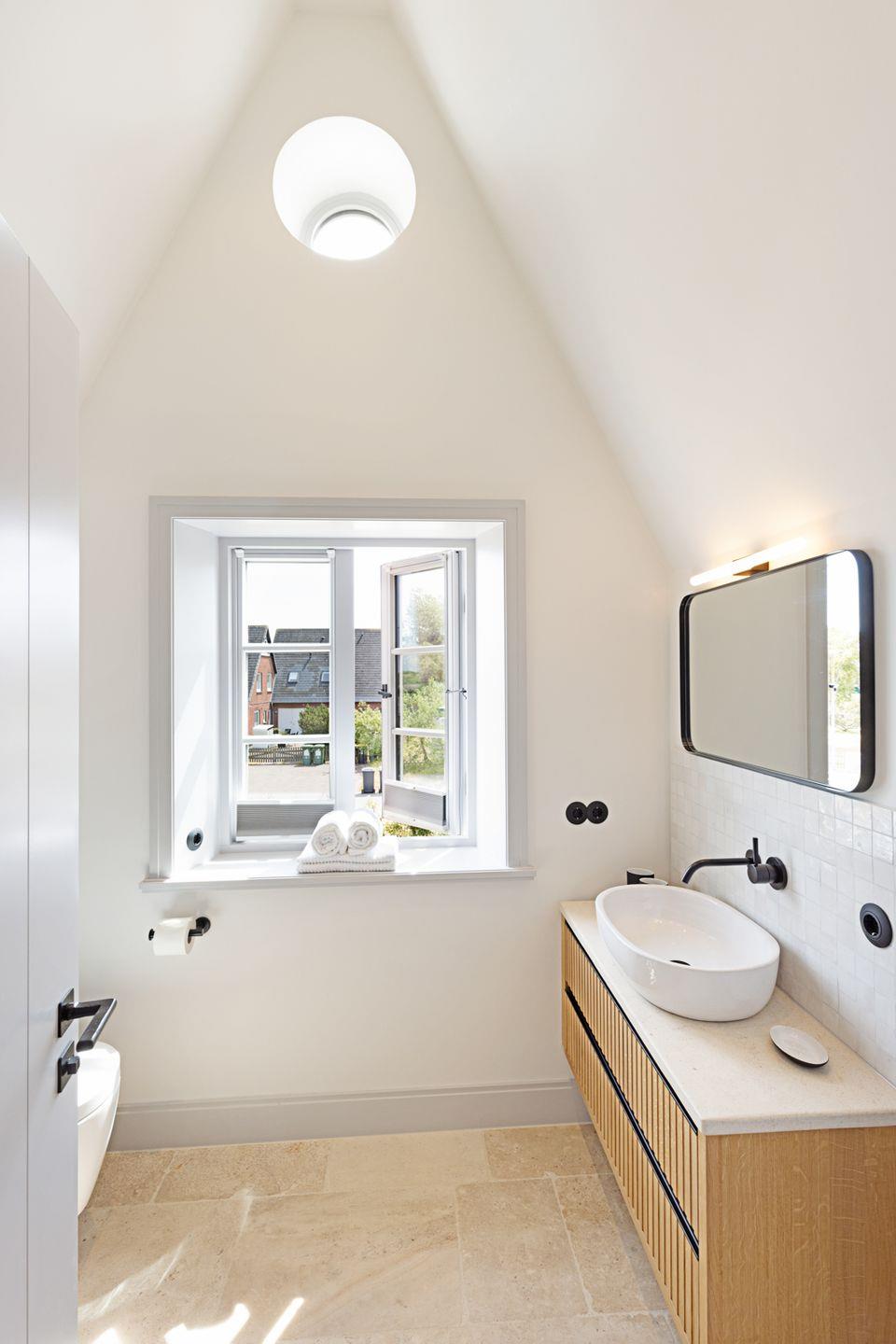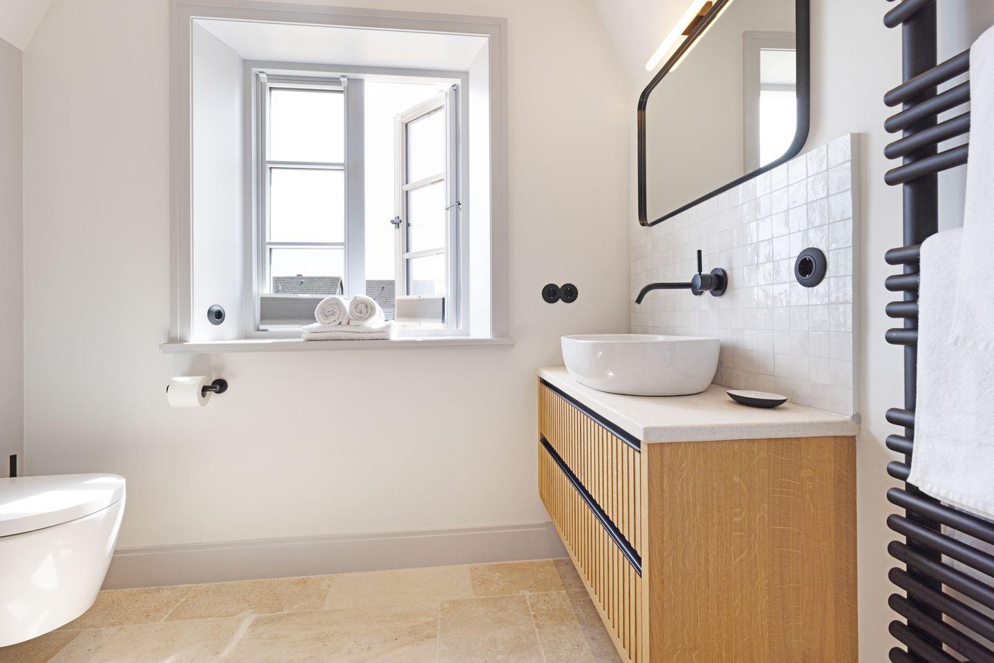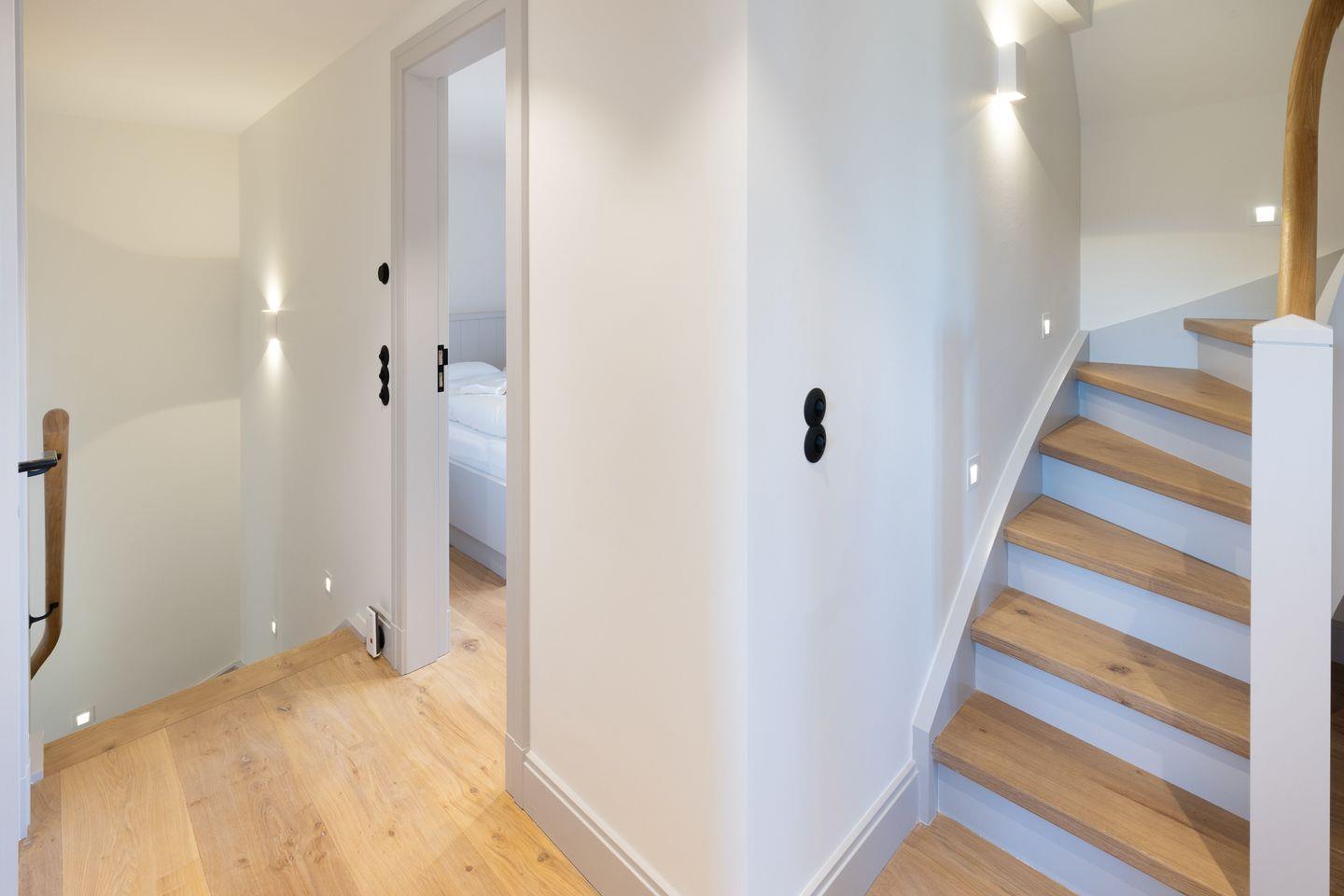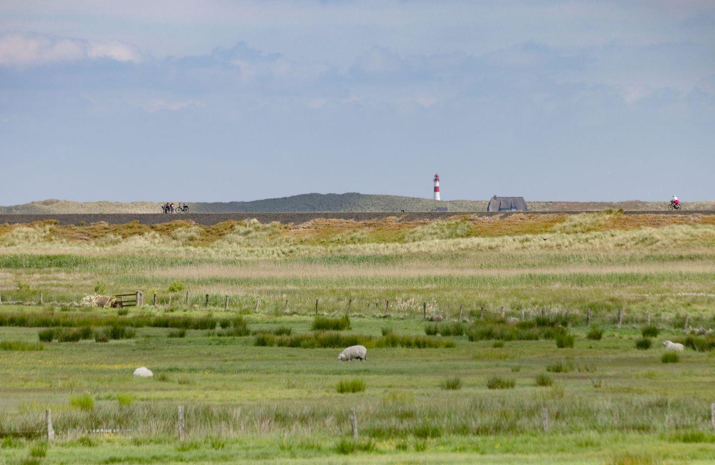 Im Obergeschoss befinden sich zwei komfortable Schlafzimmer, jeweils ausgestattet mit Doppelbett und Fernseher. Beide Zimmer bieten einen herrlichen, freien Blick auf die Lister Fenne und schaffen eine besonders ruhige und erholsame Schlafatmosphäre. Ergänzt wird diese Etage durch ein modernes Badezimmer mit Dusche sowie ein weiteres Gäste-WC.