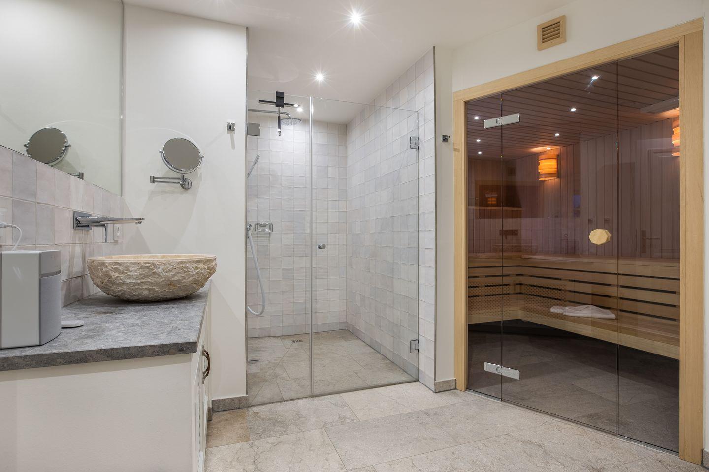 Das Untergeschoss bietet Ihnen eine hauseigene Sauna, für die kalten Tage nach langen Spaziergängen, ein Bad mit separatem WC und zwei weitere Zimmer ausgestattet mit je einem Doppelbett und Flatscreen-TV und einem Bose Sound System.
