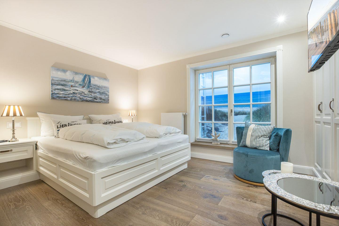 OG: 1 Raum mit Doppelbett (180x200cm) Tempur Matratzen, Meerblick, begehbarem Kleiderschrank, Flatscreen-TV und Bose Sound System, 1x Bad freistehende Badewanne/Dusche, Wickelablage, 1 separates WC