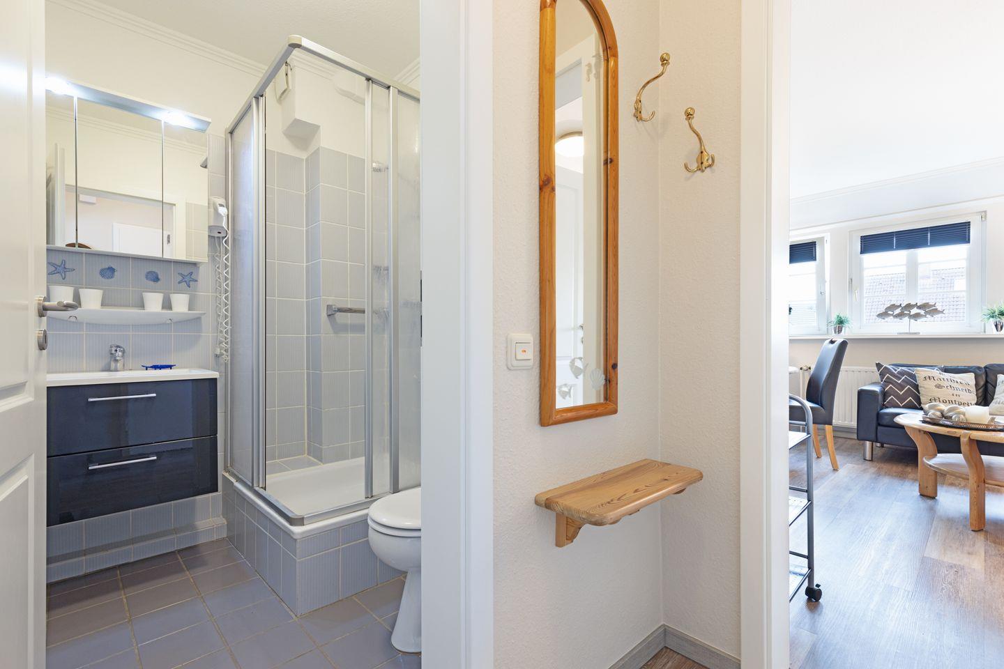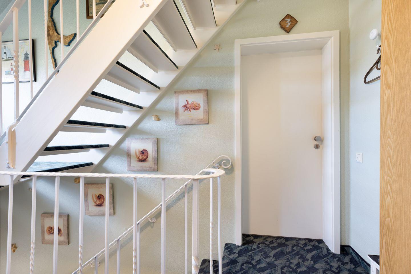 Das Appartement befindet sich komplett im ersten Obergeschoss, neben dem gemütlichen Wohnzimmer mit Flachbildfernseher finden Sie eine