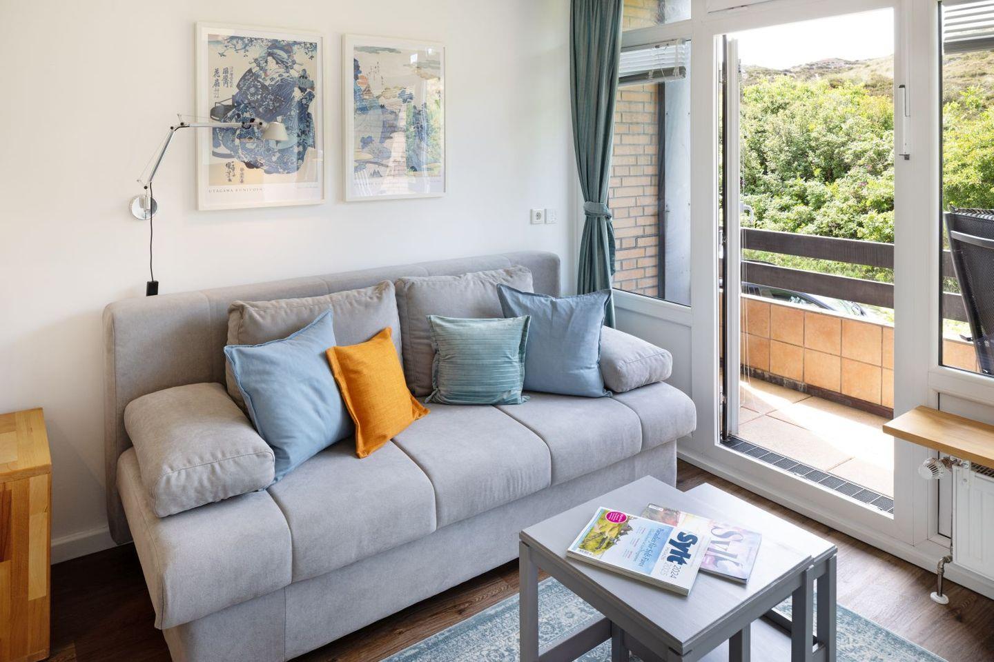 Das ein Zimmer Appartement verfügt über eine hochwertige Schlafcouch sowie eine Sitzgelegenheit für zwei. Eine gut ausgestattete Küchenzeile und ein modernes Duschbad.