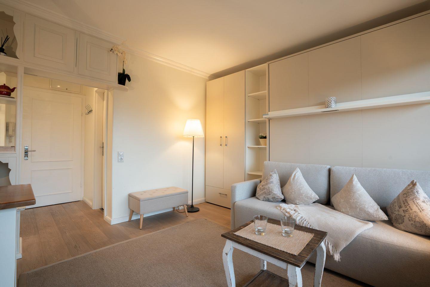 Die Unterkunft selbst bietet eine komfortable Wohnfläche mit einem geschmackvoll eingerichteten Raum. Ideal für Paare, bietet das "Deichblick" Platz für bis zu 2 Personen. Der Wohnraum ist mit modernen Annehmlichkeiten ausgestattet, darunter ein 35- bis 44 Zoll großer Fernseher mit Satellitenanschluss. Zudem steht Ihnen kostenloses WLAN zur Verfügung, sodass Sie auch im Urlaub jederzeit in Kontakt bleiben oder entspannte Filmabende genießen können.