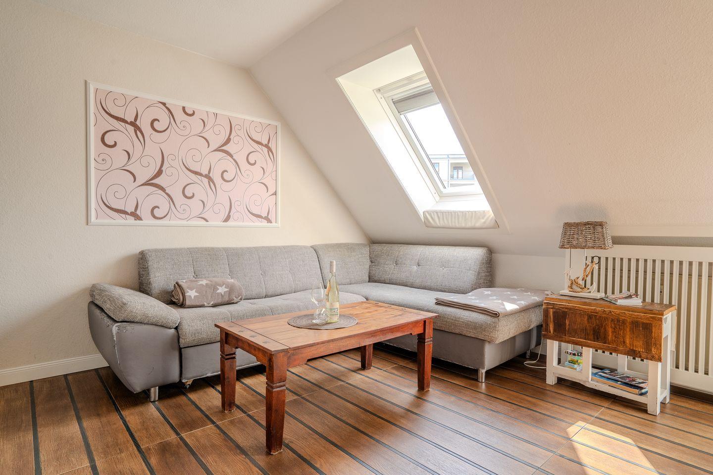 Die Ausstattung der Unterkunft lässt keine Wünsche offen. Eine vollständig eingerichtete Kochnische mit modernen Geräten, darunter ein Induktionsherd, Backofen, Kühlschrank mit Gefrierfach, Mikrowelle, Kaffeemaschine sowie eine Espressomaschine, sorgt dafür, dass Sie Ihre Lieblingsgerichte auch im Urlaub zubereiten können. Der Essbereich mit Esstisch sowie die gemütliche Sofaecke bieten Ihnen den Platz, um das Zusammensein zu genießen und schöne Abende zu verbringen. In den zwei Schlafzimmern finden Sie erholsame Nächte vor, während das Badezimmer mit bodengleicher Dusche, WC, Waschbecken und Kosmetikspiegel ausgestattet ist, um Ihren Komfort zu erhöhen.
