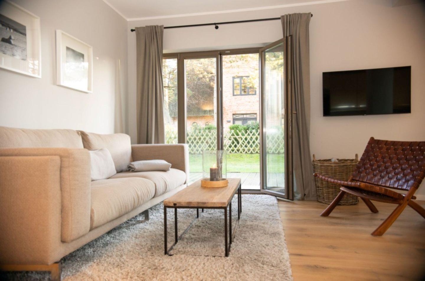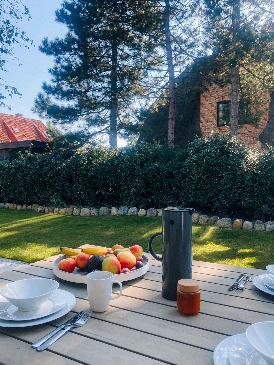 Für Erholung im Freien sorgt der Zugang zur Terrasse mit Blick in den Garten, ausgestattet mit Gartenmöbeln und einer Liegewiese – ideal zum Entspannen an der frischen Nordseeluft. Zusätzlich steht Ihnen ein eigener Strandkorb im Außenbereich zur Verfügung, sodass Sie die Sonne genießen können. Haustiere sind willkommen, sodass auch Familien mit Hund einen angenehmen Urlaub verbringen können. Das Objekt ist zudem für Nichtraucher vorgesehen.