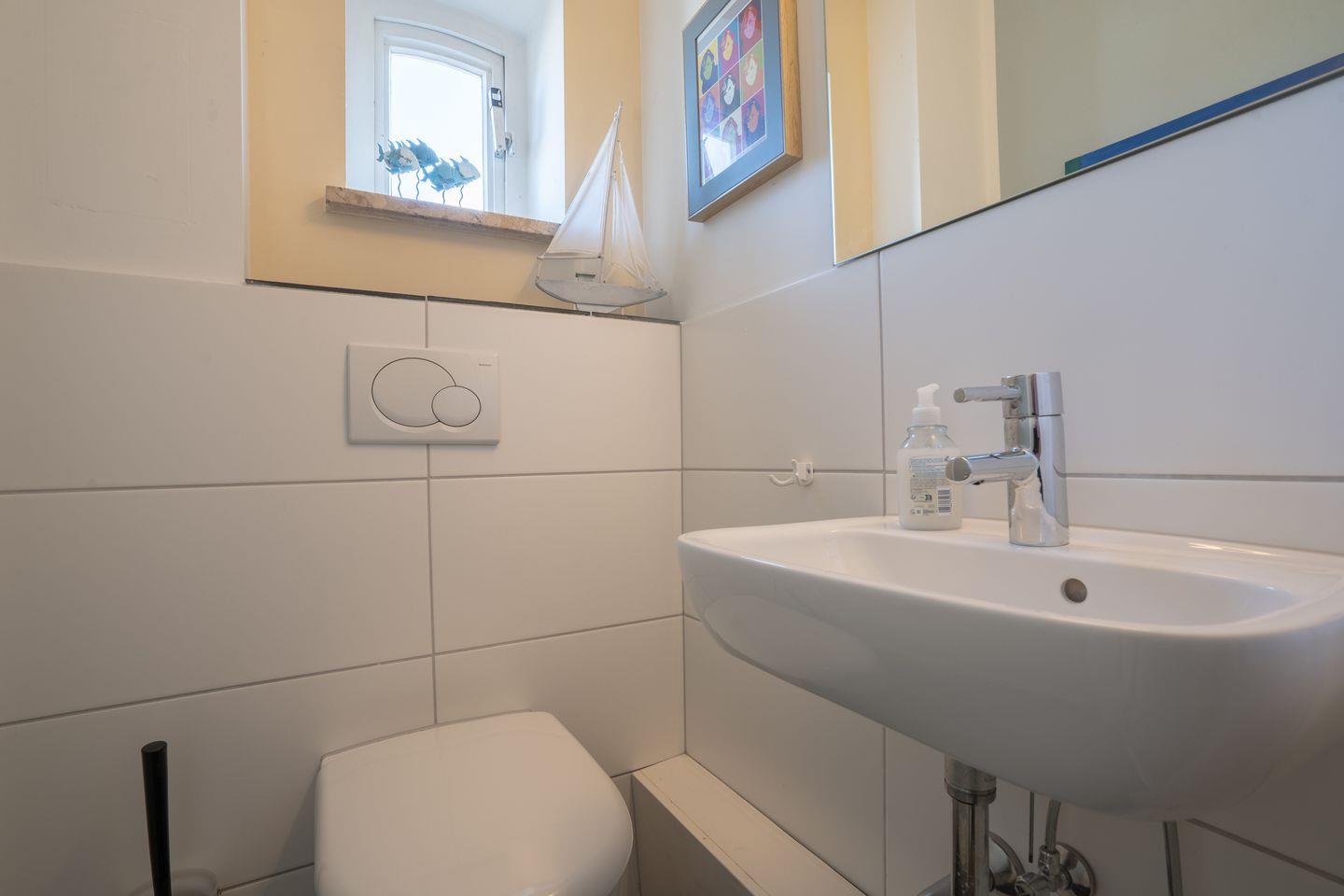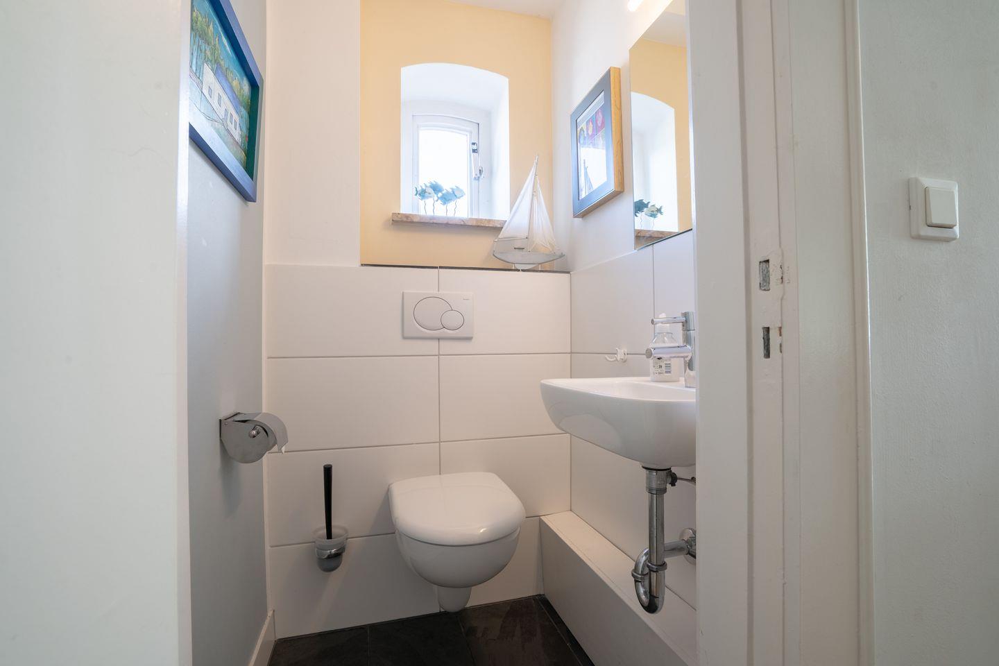 Das Badezimmer ist sowohl mit einer bodengleichen Dusche als auch mit einer Badewanne ausgestattet. Ein Fenster, Waschbecken, Spiegel, Kosmetikspiegel, Haartrockner und ein WC sorgen für einen angenehmen Komfort bei der täglichen Pflege. Dank der vorhandenen Heizung fühlen Sie sich auch an kälteren Tagen wohl.