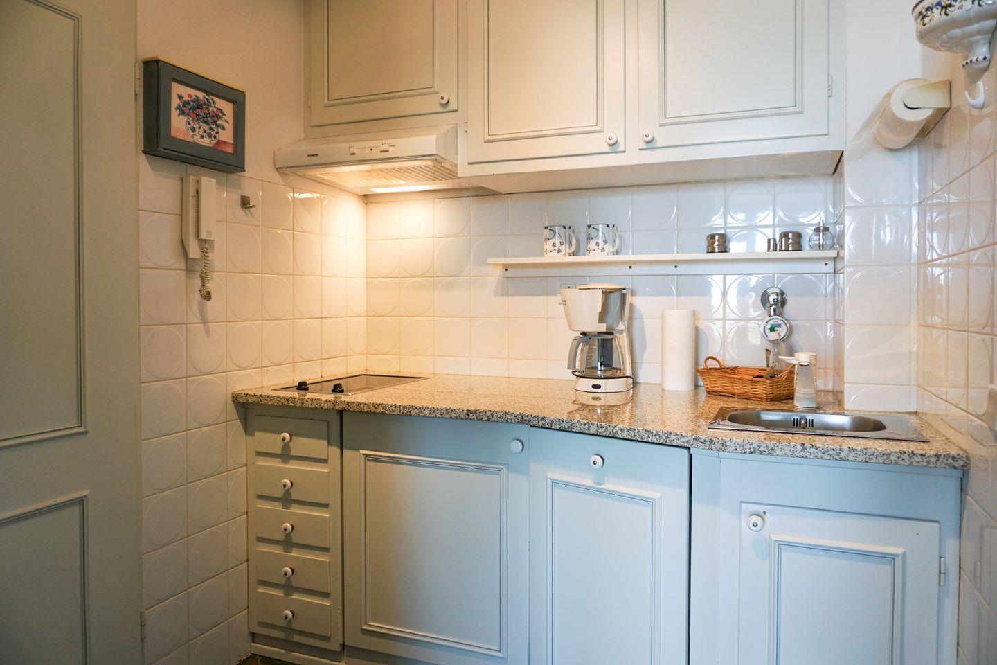Die Küche ist offen in das Wohnzimmer integriert und hochwertig ausgestattet: Ihnen stehen eine Spülmaschine, Kühlschrank mit Gefrierfach, Herd, Kaffeemaschine, Wasserkocher sowie Küchenutensilien zur Verfügung. Somit können Sie sich im Urlaub unabhängig und flexibel verpflegen. Ein Staubsauger rundet das Ausstattungspaket ab.