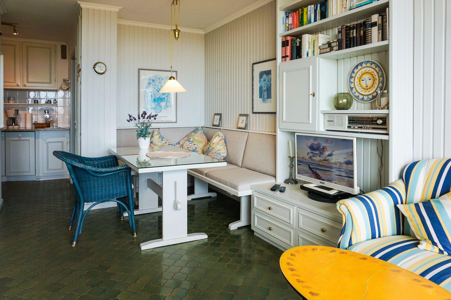 Zu den technischen Annehmlichkeiten zählen SAT-TV, ein Blu-ray-Player, ein Radio und ein kostenloser WLAN-Internetzugang. Bücher laden zu gemütlichen Lesestunden ein. Für mehr Komfort sorgt ein Rauchmelder, der höchsten Sicherheitsansprüchen genügt.