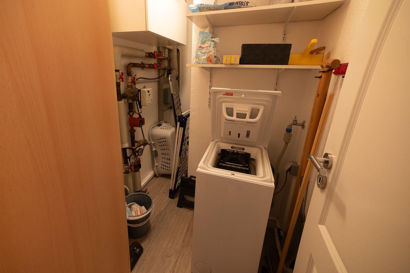 Für zusätzlichen Komfort sorgen eine Waschmaschine, Bügelbrett, Bügeleisen und Staubsauger zur Eigennutzung in der Unterkunft.