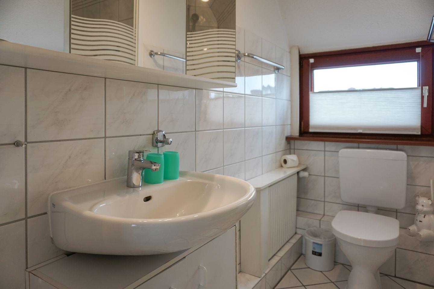 Das Badezimmer ist mit einer Dusche, WC, Waschbecken, Spiegel, Haartrockner und Fenster ausgestattet und bietet damit alles Notwendige für einen komfortablen Aufenthalt. Warmes Wasser ist selbstverständlich vorhanden. Für Sicherheit sorgen Rauchmelder in der Wohnung.