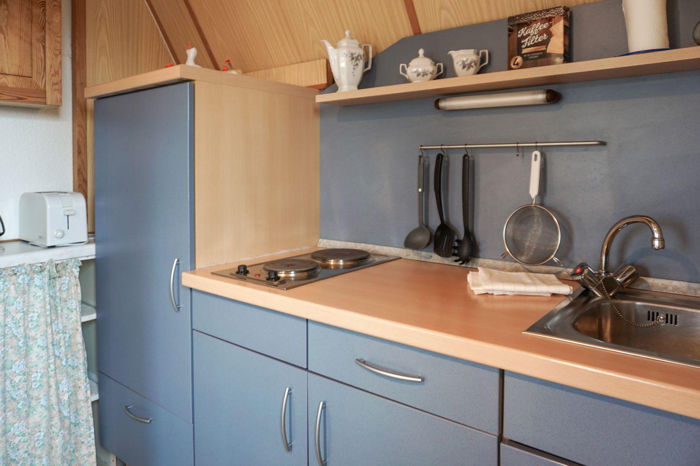 In der Küche erwartet Sie eine praktische Kochnische mit einem 2-Platten-Herd, Kühlschrank, Kaffeemaschine, Wasserkocher und Toaster. Für die Selbstverpflegung stehen Ihnen Küchenutensilien zur Verfügung. Der Essbereich ist offen in den Wohnraum integriert, sodass auch beim Zubereiten der Mahlzeiten ein kommunikativer Austausch gewährleistet bleibt. Ein Staubsauger zählt ebenso zur Ausstattung, was Ihnen die Reinigung erleichtert.