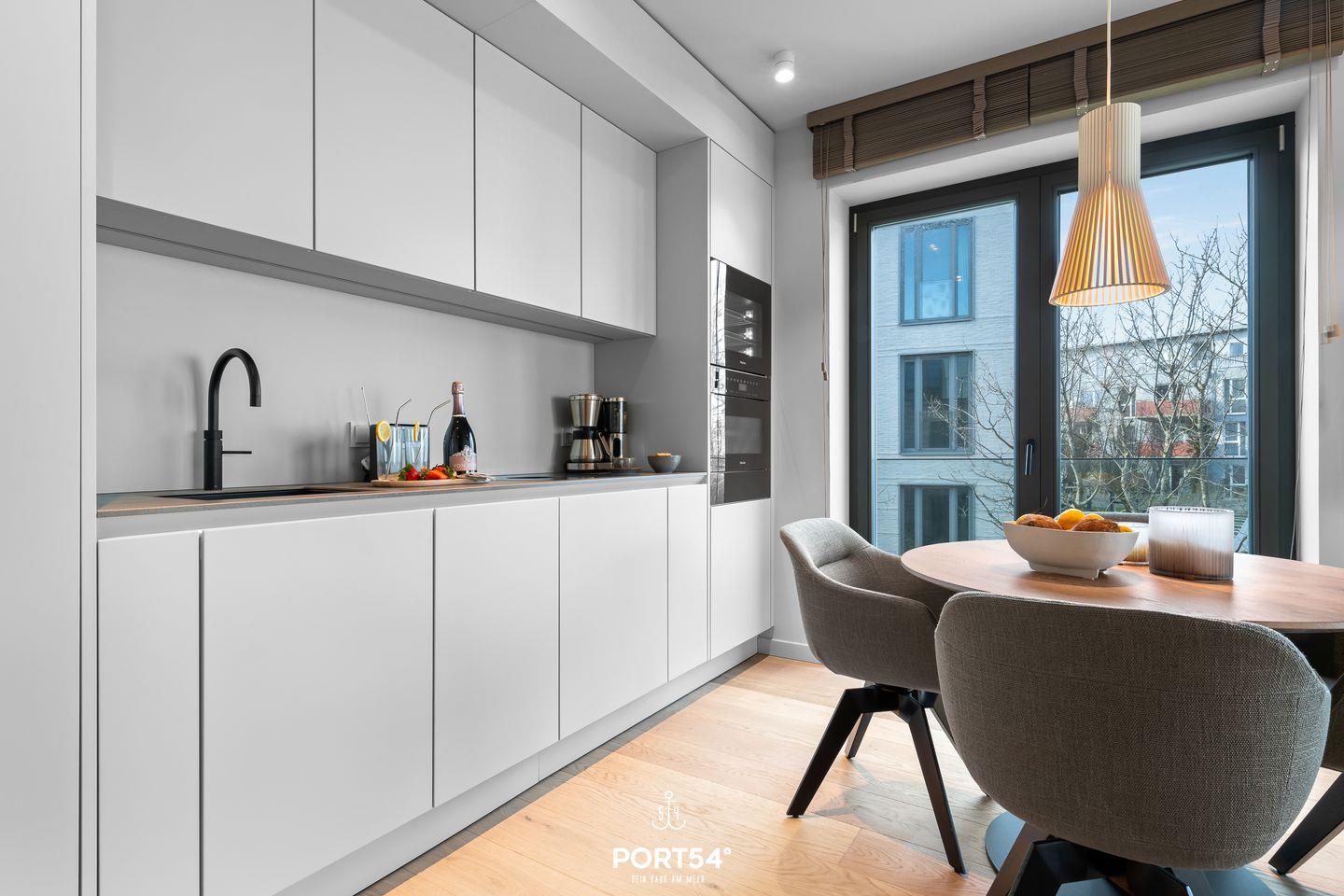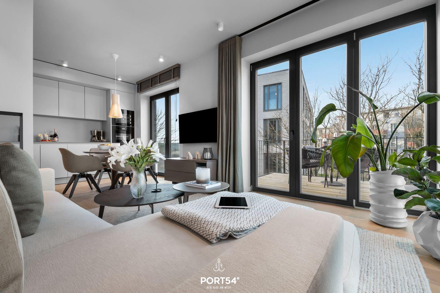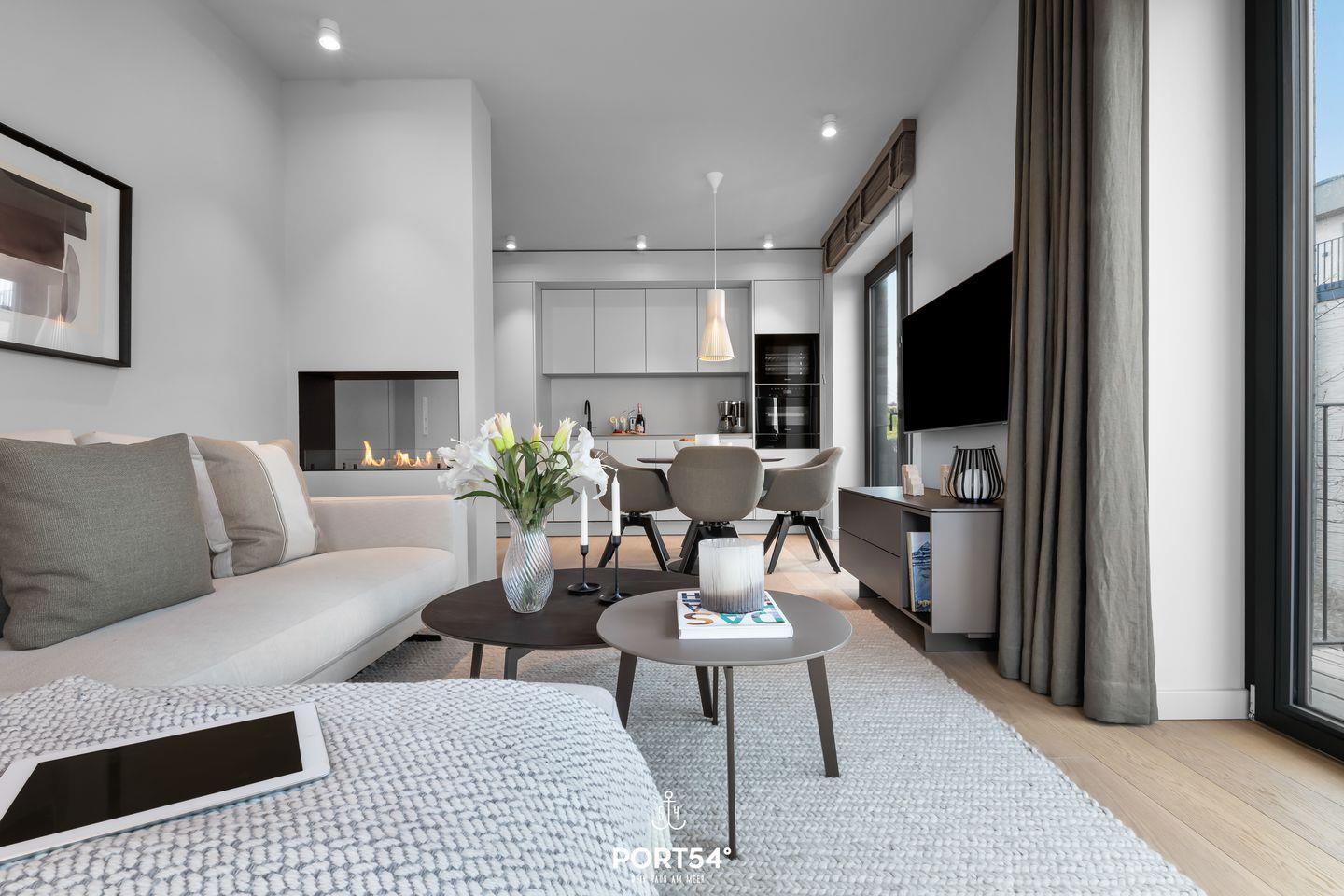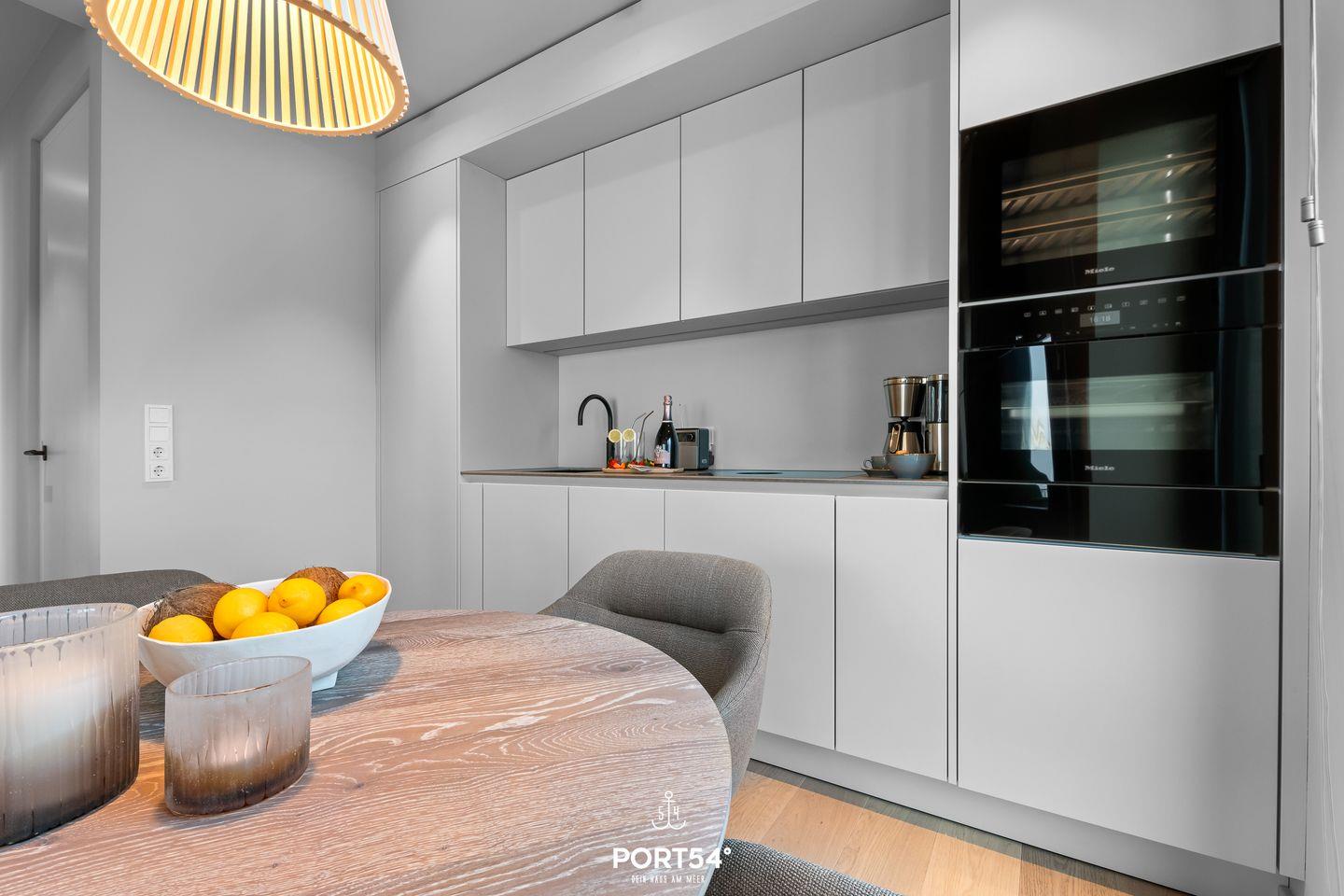 Herzstück der Wohnung ist der offene Wohnbereich, der hell und einladend wirkt. Die moderne Küche von SieMatic ist mit einem Induktionsherd, Backofen, Wärmeschublade und einem Geschirrspüler voll ausgestattet. Außerdem findest du in der Küche einen Quooker, der dir jederzeit heißes Wasser sowie Sprudelwasser liefert. Für gemütliche Abende steht dir ein bequemer Sofabereich zur Verfügung, um die Zeit gemeinsam zu verbringen oder einen Film auf dem Smart-TV zu genießen.