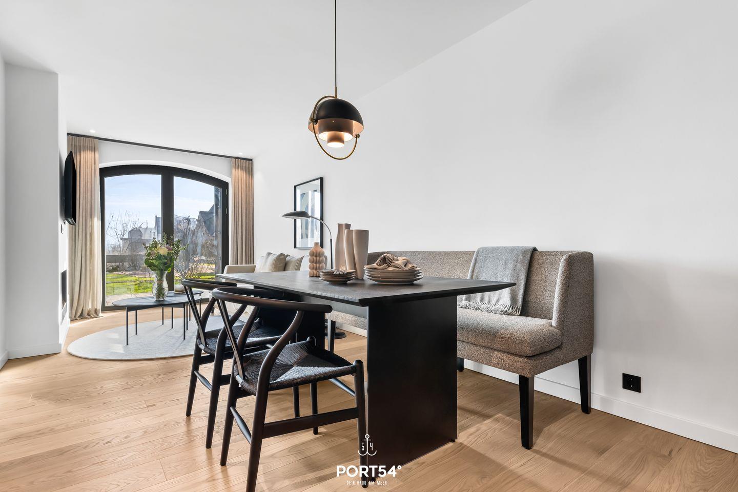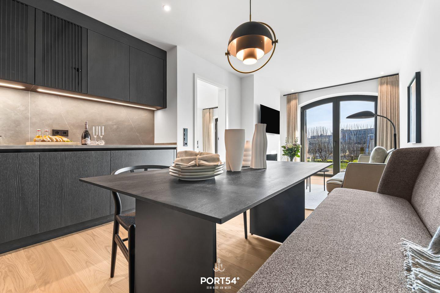 Viele Möbel der hochwertigen Einrichtung stammen aus dem Hause der Bornhold Manufaktur in Hamburg und wurden nach Maß angefertigt. Marken wie Schramm, ASCO, Jacaranda, Christine Knöcke und VIPP stehen für den Anspruch und die Qualität in dieser Ferienwohnung.